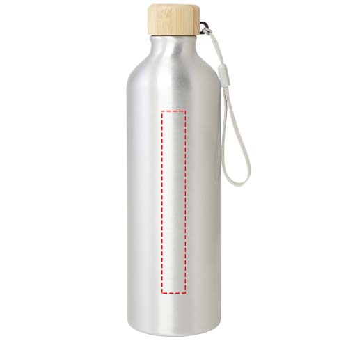 RCS-sertifioitu kierrätetystä alumiinista valmistettu vesipullo tyylikkäällä bambukannella. Tässä kevyessä, yksiseinäisessä pullossa on hihna, jonka ansiosta pulloa on helppo kantaa. Bambu on peräisin luontoa säästävistä, sosiaalisesti ja ympäristön kannalta vastuullisista lähteistä. Tilavuus on 770 ml. Pestävä käsin.
