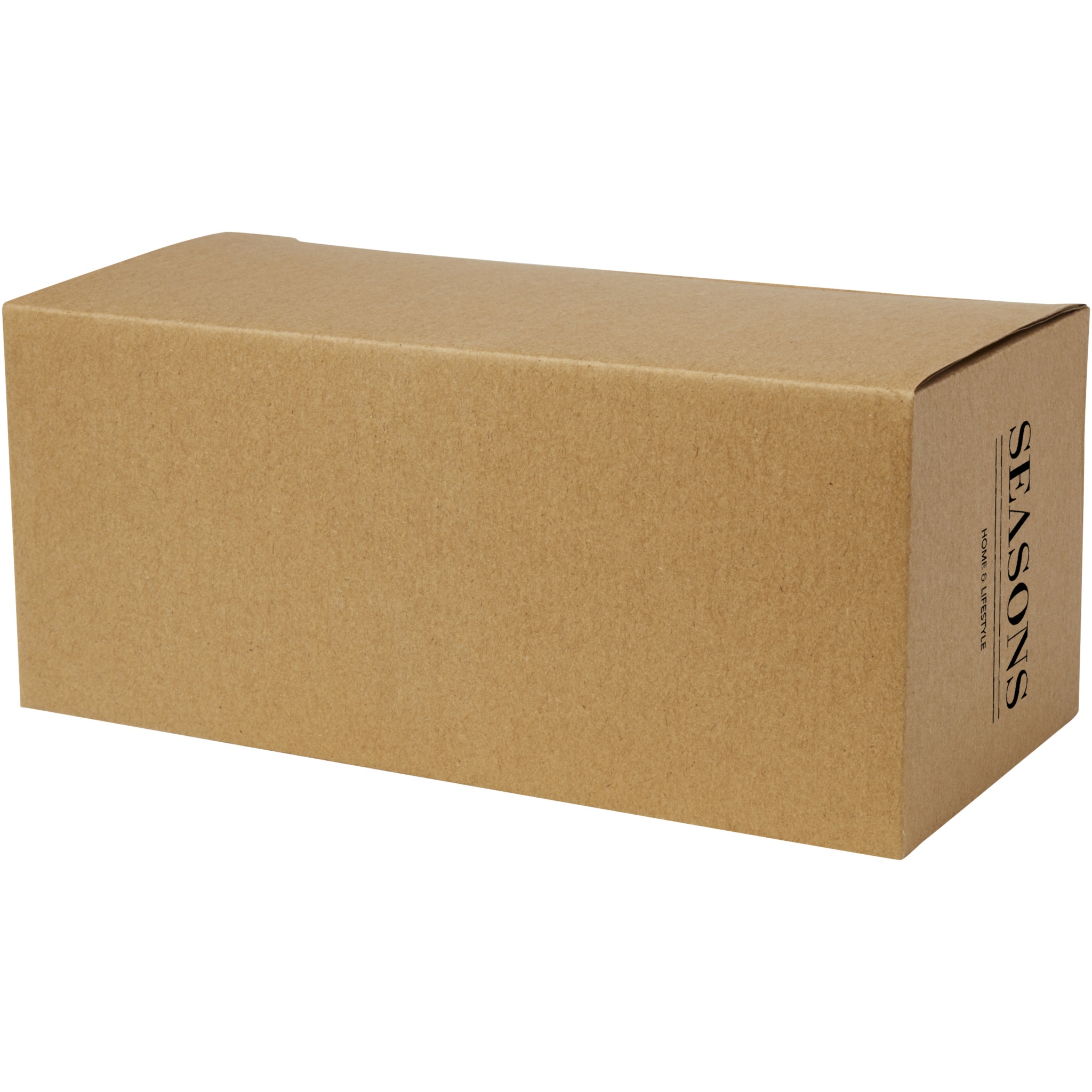 Kaksi kaksiseinäistä lämpölasia ja bambualuset. Käytetty bambu on peräisin kestävistä, ympäristöystävällisistä ja sosiaalisesti vastuullisista lähteistä. Kaksinkertaisen borosilikaattilasin ansiosta juoman lämpötila säilyy pitkään. Tilavuus on 250 ml. Lasinalusen koko: 10 x 10 x 1 cm.