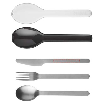 Tyylikäs ja käytännöllinen Ellipse aterinsetti sisältää veitsen, haarukan ja lusikan, jotka on valmistettu ruostumattomasta teräksestä. Ruokailuvälineet säilytetään kompaktissa muovipidikkeessä. Tiskikoneen kestävä.