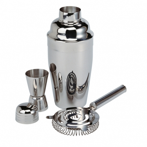 Ravistetaan, ei sekoitetaan! Tällä laadukkaalla kromatulla cocktailsetillä sekoitat kuin ammattibaarimikko. Sarja sisältää 1 ravistimen, 1 mittakannun ja 1 siivilän 2 tuella. Siivilä sopii lasin kokoon spiraalinsa ansiosta, joten kaikki isommat hedelmät tai jääpalat pysyvät loitolla lasista kaadetessa. Ruostumaton ruostumaton teräs tekee laadukkaista siiviläistä tuhoutumattomia. Asetamme logosi shakeriin laserkaiverruksella. Jokainen setti on pakattu lahjarasiaan.