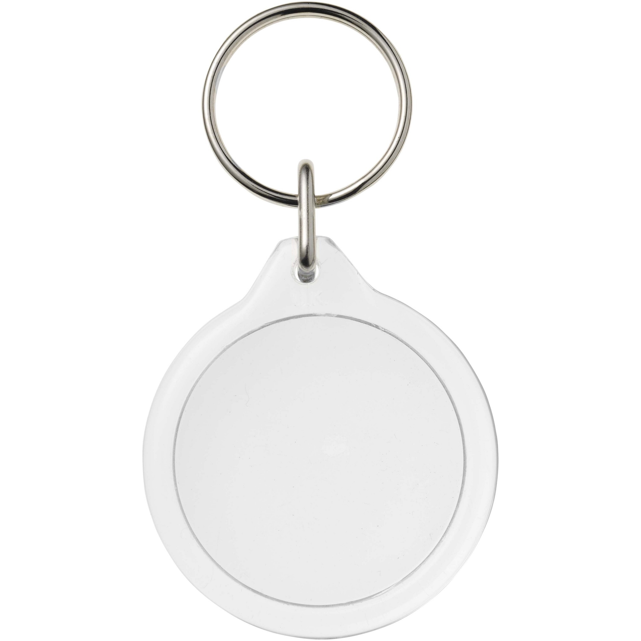 Kirkas pyöreä I7-avaimenperä, jossa on metallinen avainrengas. Metallirengas tekee profiilista litteän, mikä on ihanteellista postituksen kannalta. Tulosteinsertin mitat: 3,3 cm.