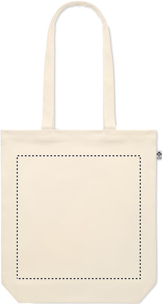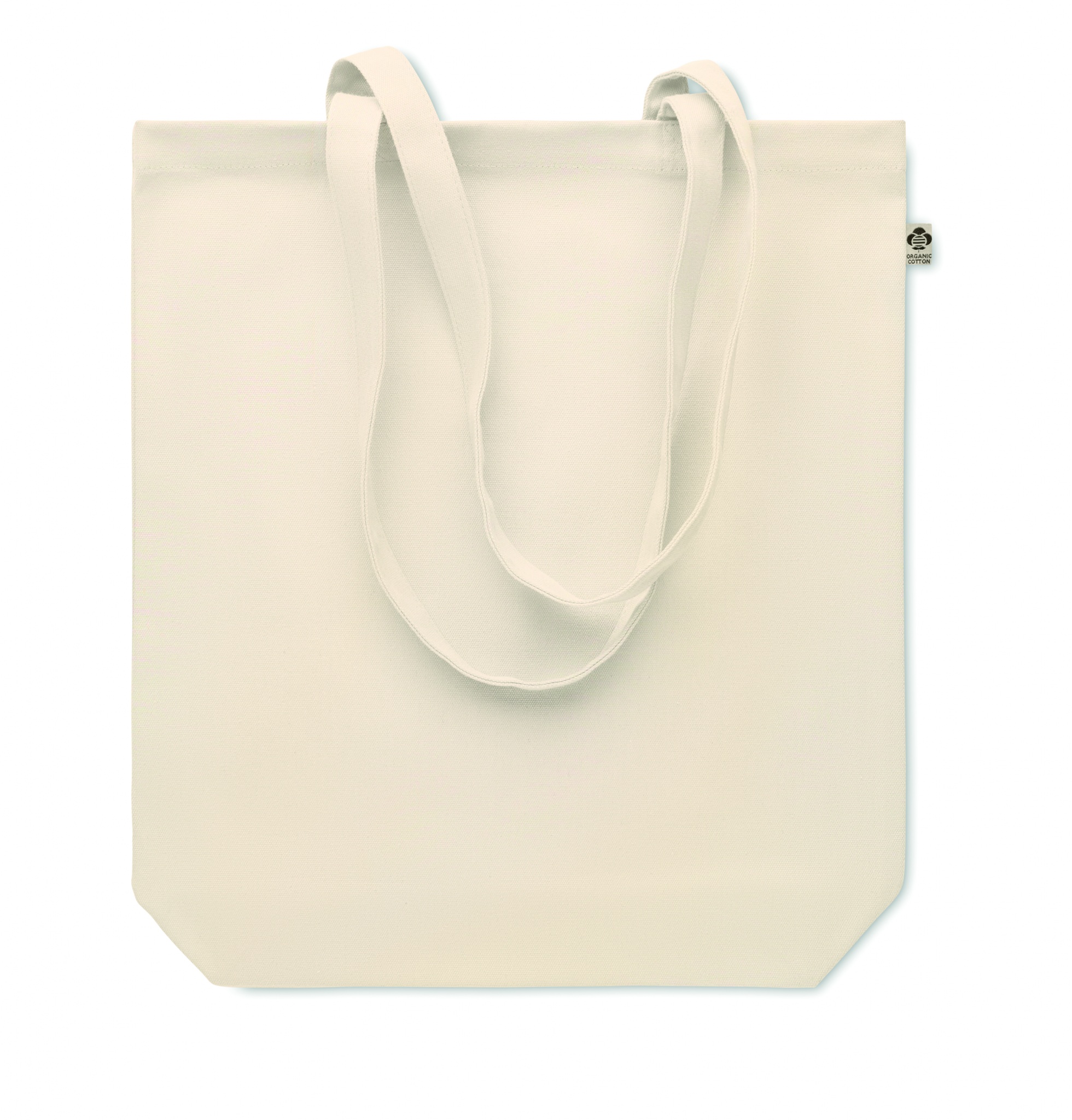 Luomupuuvillainen canvasostoskassi pitkillä kahvoilla ja pohjalevyllä. 270 gr/m².
