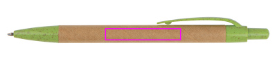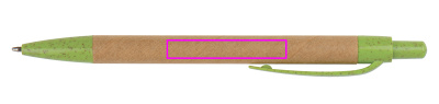 Kierrätyspahvista valmistettu kuulakärkikynä, jossa sininen kirjoitustäyttö. Kaikki sovellukset on valmistettu kestävästä vehnänoljesta. Painamme logosi varrelle.
