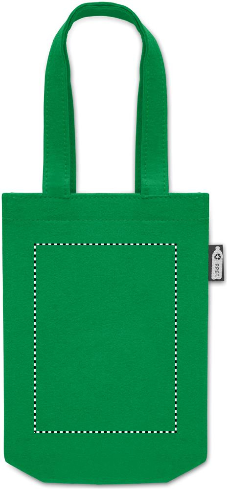 Pieni RPET-huopalahja- tai herkkulaukku, jossa lyhyet kahvat ja kulmakivet. Huovan paksuus: 1 mm.