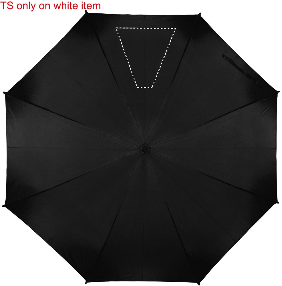 190T pongee 23 tuuman sateenvarjo, automaattii avauksella. Mustalla päällystetty metallivarsi, ruoteet ja muovikärki.