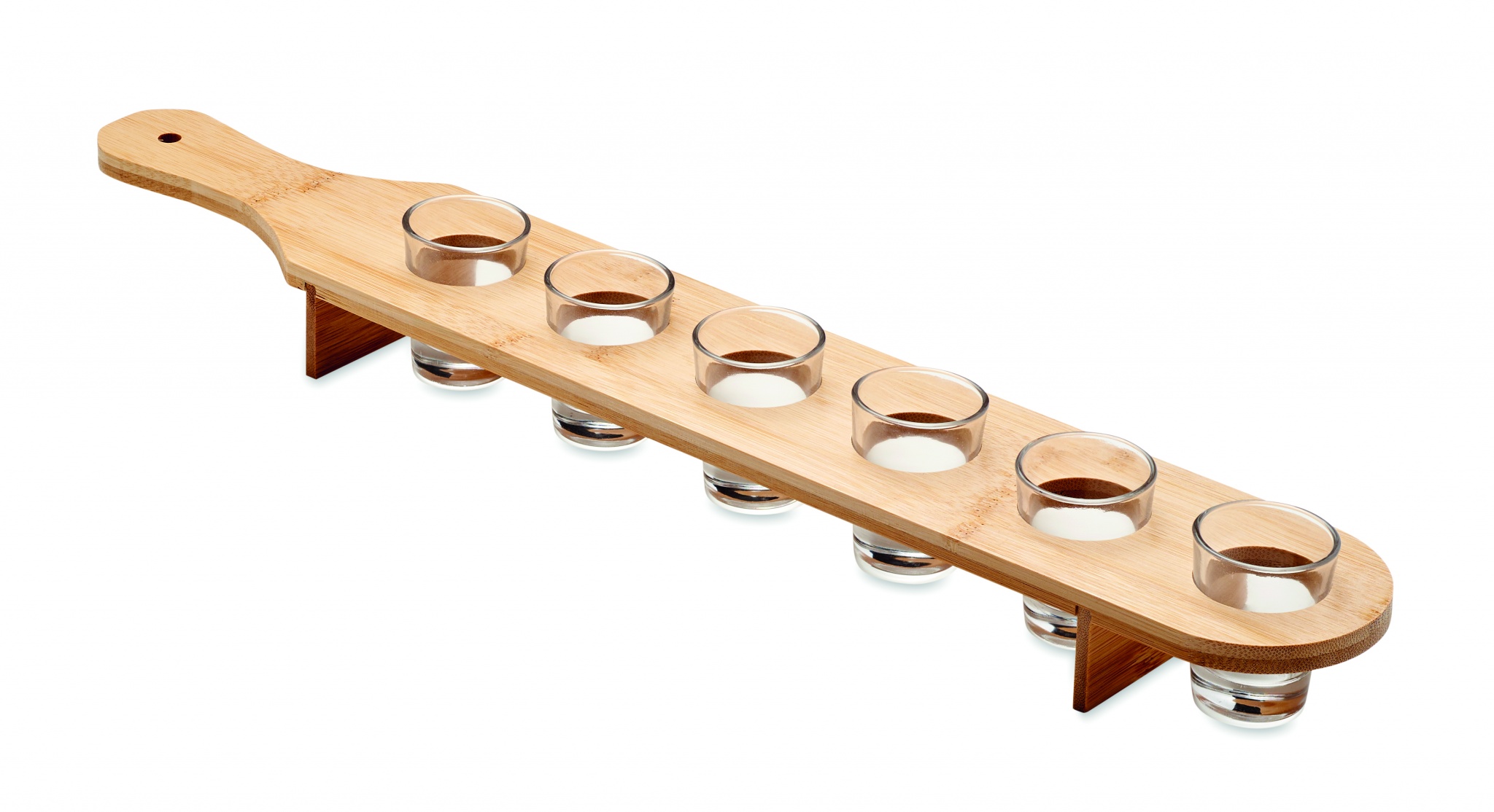 6x 20 ml shottilasinsetti bambuisella tarjottimella.