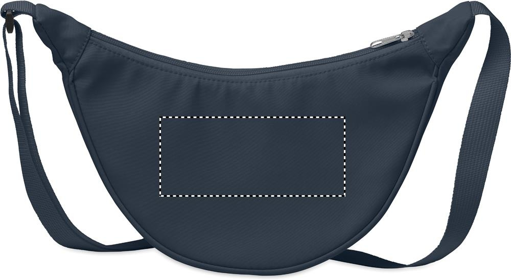 Puolikuun muotoinen yliolan laukku 400D Oxford -kankaasta ja 210D RPET-vuorilla. Yksi vetoketjullinen päätasku ja kaksi sisätaskua.