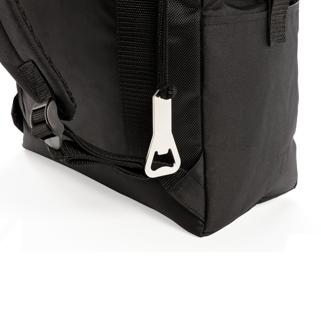 Deluxe-mallinen 1680D- ja 600D-polyesterikylmälaukku, jossa ekstrasuuri, vetoketjullinen päälokero ja vetoketjulliset etutaskut. Runsaasti säilytystilaa. Kaksinkertaisesti vahvistetut kantokahvat. Mukana pullonavaaja. Kylmälaukkuun mahtuu jopa 28 tölkkiä. PEVA-eristys. PVC-vapaa.