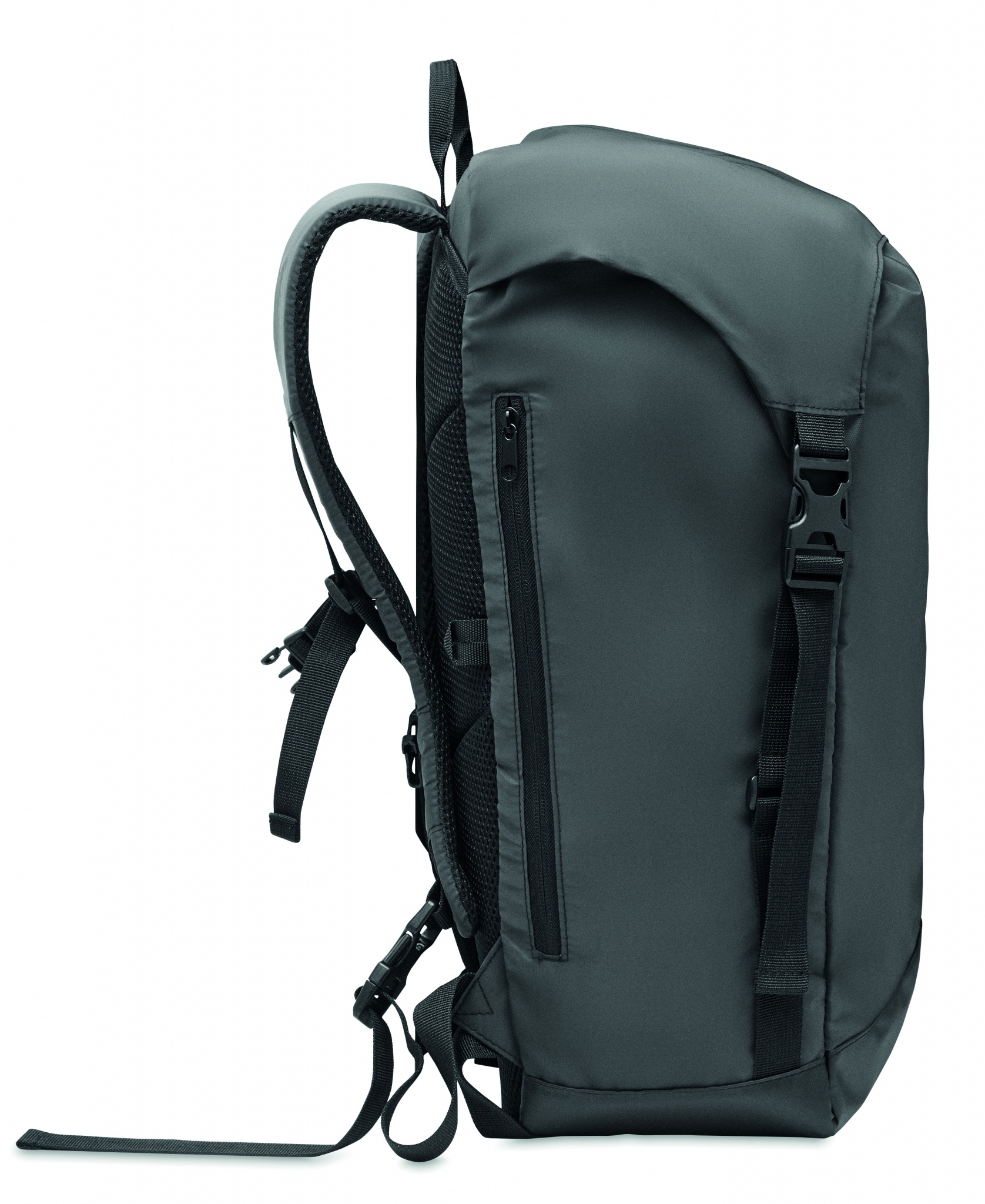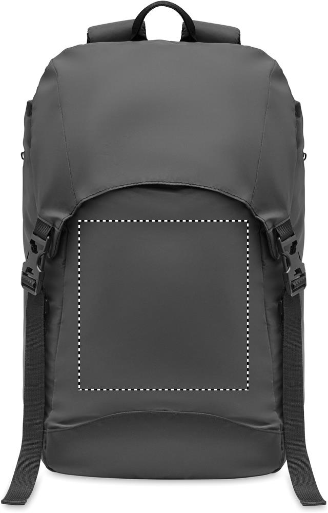 Ulkoilureppu 190T-polyesteristä jossa on kevyt heijastava pinta. Sivulla vetoketjullinen ulkotasku ja pehmustettu selkäosa, sisävuori, jossa vetoketju. Kannettavalle tietokoneelle pehmustettu lokero. Repussa on säädettävät ja pehmustettut kantohihnat sekä säädettävä rinta- ja vyötäröhihna solkisuljin. Vettä hylkivä.