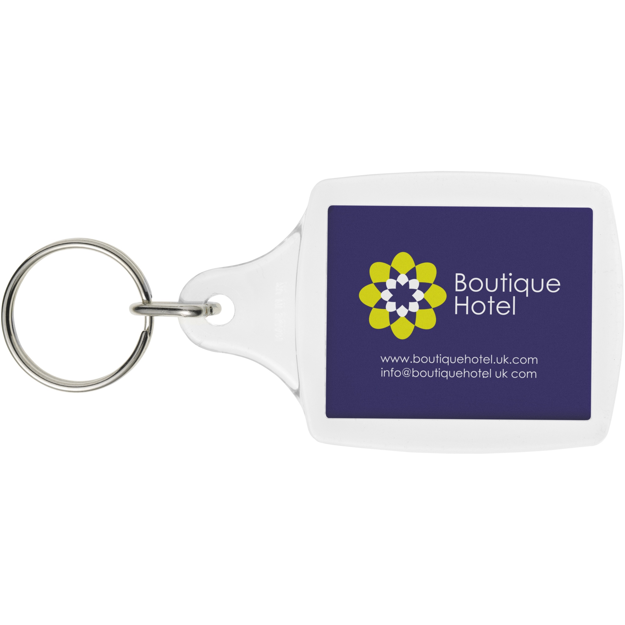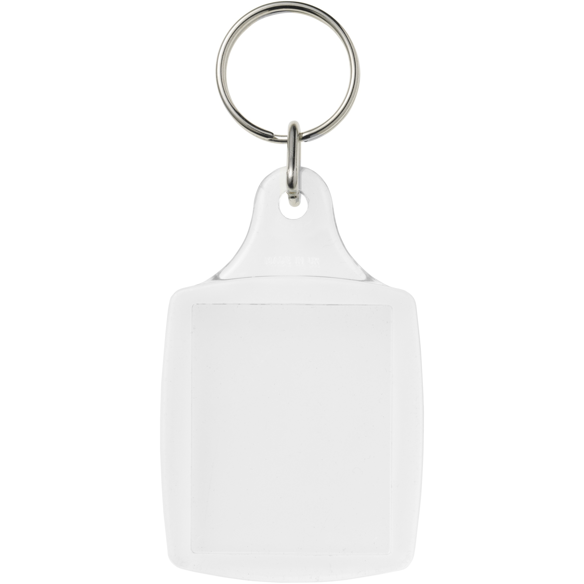 Kirkas A5-avaimenperä, jossa on metallinen avainrengas. Sisään on suunniteltu sopimaan paperi-insertti tai passikuva. Tulosteinsertin mitat: 4,5 cm x 3,5 cm.