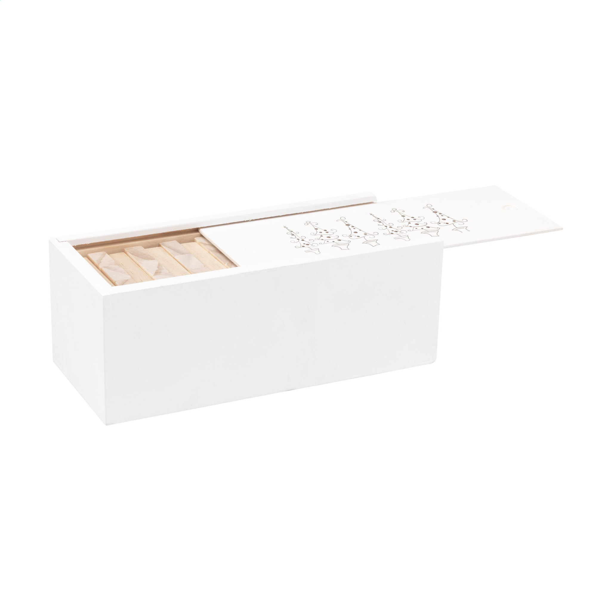 Puinen pinoamispeli (48 palikkaa) tavallisella joulukuviolla. Tornin mitat 16,5 x 6 x 6 cm. Mukana valkoinen puinen laatikko, jossa on liukuva aukko säilytystä varten. Sisältää ohjeet. - Tämä tuote on painettu tavallisella joulukuviolla. Valittavana 6 erilaista mallia kuvien mukaisesti. Suunnittelua ei ole mahdollista muokata. Jokainen tuote toimitetaan erillisessä ruskeassa pahvilaatikossa.