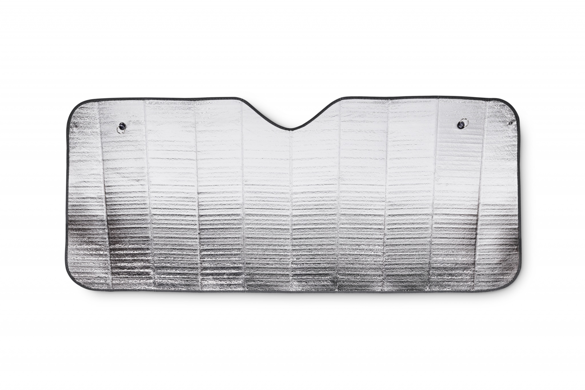 Taitettava tuulilasin aurinkosuoja. Vaahtomuovi 2mm ja PE-alumiinifolio.