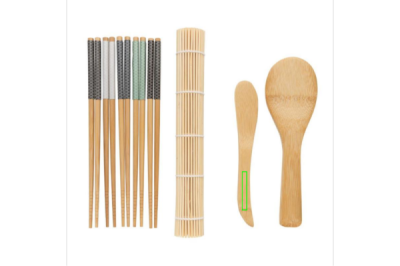 Tämä Ukiyo 8-osainen sushisetti tekee sushien rullauksesta helppoa, ja mahdollistaa herkullisen sushin valmistuksen alusta loppuun. Settiin kuuluu bambuinen sushimatto, bambuinen riisikauha, veitsi ja 5 paria syömäpuikkoja. Pakattu kraft -lahjapakkaukseen.