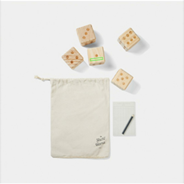 Outdoor yacht -peli on klassinen noppapeli, joka sopii erinomaisesti ihaniin ulkoilupäiviin. Pelin tavoitteena on saada mahdollisimman korkea pistemäärä heittämällä ja yhdistelemällä noppia eri tavoin. Peli on helppo oppia, ja sitä voivat pelata kaikenikäiset. Mukana 5 noppaa, mitoiltaan 7 x 7 x 7 cm, muistilehtiö ja kynä. Pakattu puuvillapussiin. Mukana ohjekirja. Kaikki puuosat on valmistettu korkealaatuisesta FSC®-sertifioidusta mäntypuusta, mikä takaa puun olevan peräisin vastuullisesti hoidetuista metsistä.