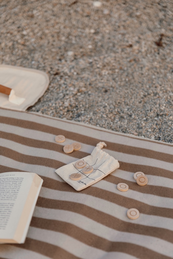 Tic Tac Toe on hauska ja yksinkertainen peli, joka sopii kaikenikäisille. Peli on pieni ja kätevä, joten se on helppo ottaa mukaan. Pelin tavoitteena on saada ensimmäisenä pelaajana kolme peräkkäin joko vaaka- tai pystysuunnassa tai vinoittain. 10 kappaletta pelimerkkejä, 5 kappaletta X-merkkejä ja 5 kappaletta O-merkkejä. Toimitetaan kangaspussissa, johon on painettu peliohjeet. Kaikki pelimerkit on valmistettu korkealaatuisesta FSC®-sertifioidusta mäntypuusta, mikä takaa puun olevan peräisin vastuullisesti hoidetuista metsistä. Pelinappulat: halkaisija 2,5 cm.