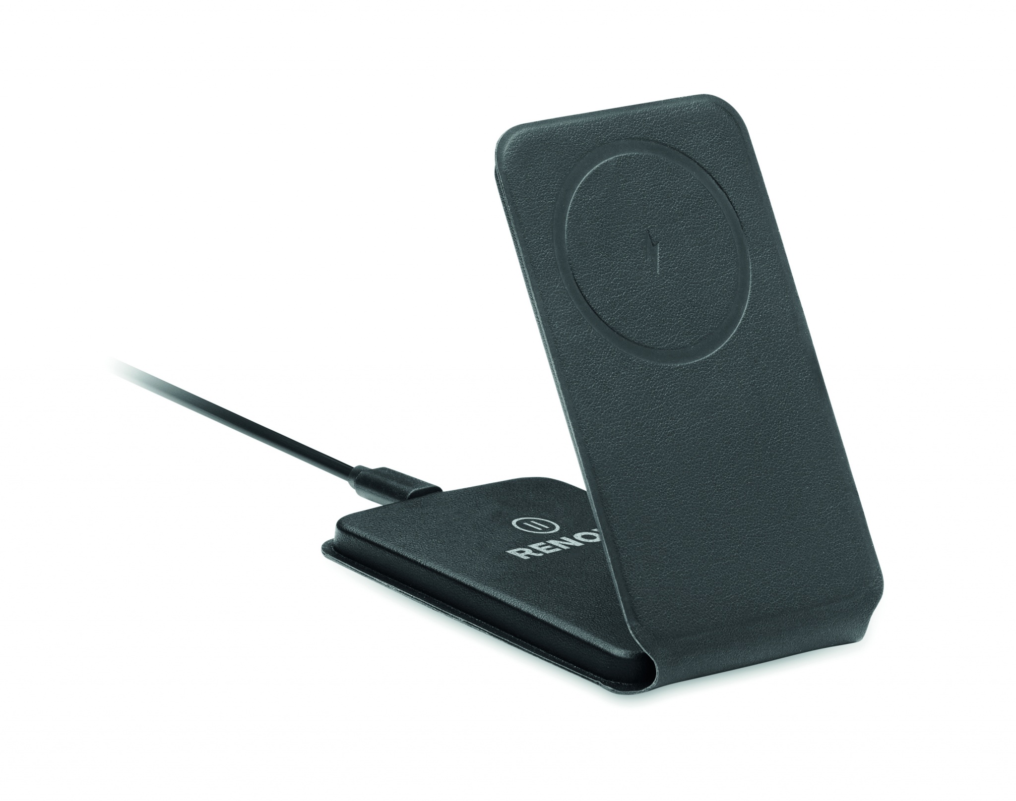 Sulankstomas belaidis 15 W įkroviklis su magnetiniu telefono stovu iš 58% perdirbto poliesterio ir 42% PU.