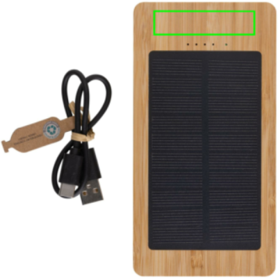 10 000 mAh saulės baterija, pagaminta iš FSC 100% bambuko. Powerbank naudoja aukštos kokybės monokristalines saulės baterijas su 19% konversijos koeficientu. Mokesčio dydis priklauso nuo sąlygų. Maitinimo bloke yra ilgai veikianti A klasės 10 000 mAh ličio baterija. Saulės įkrovimo greitis: 5V/180mA. C įvesties tipas: 5V/2A. Išvestis: USB A: 5V/2A C tipas: 5V/2A. Prekė ir priedai be PVC. Įskaitant RCS sertifikuotą perdirbtą TPE įkrovimo laidą. Supakuota į FSC® mišinio pakuotę.