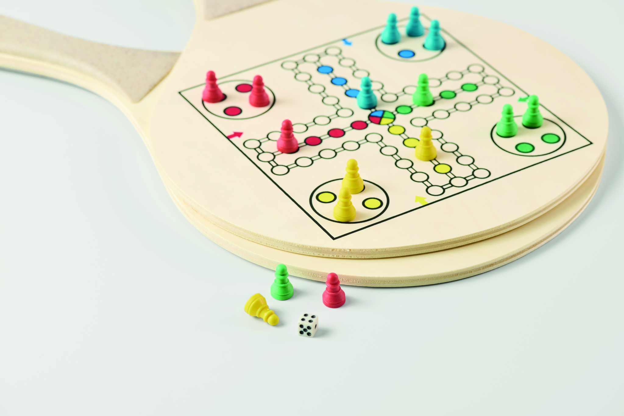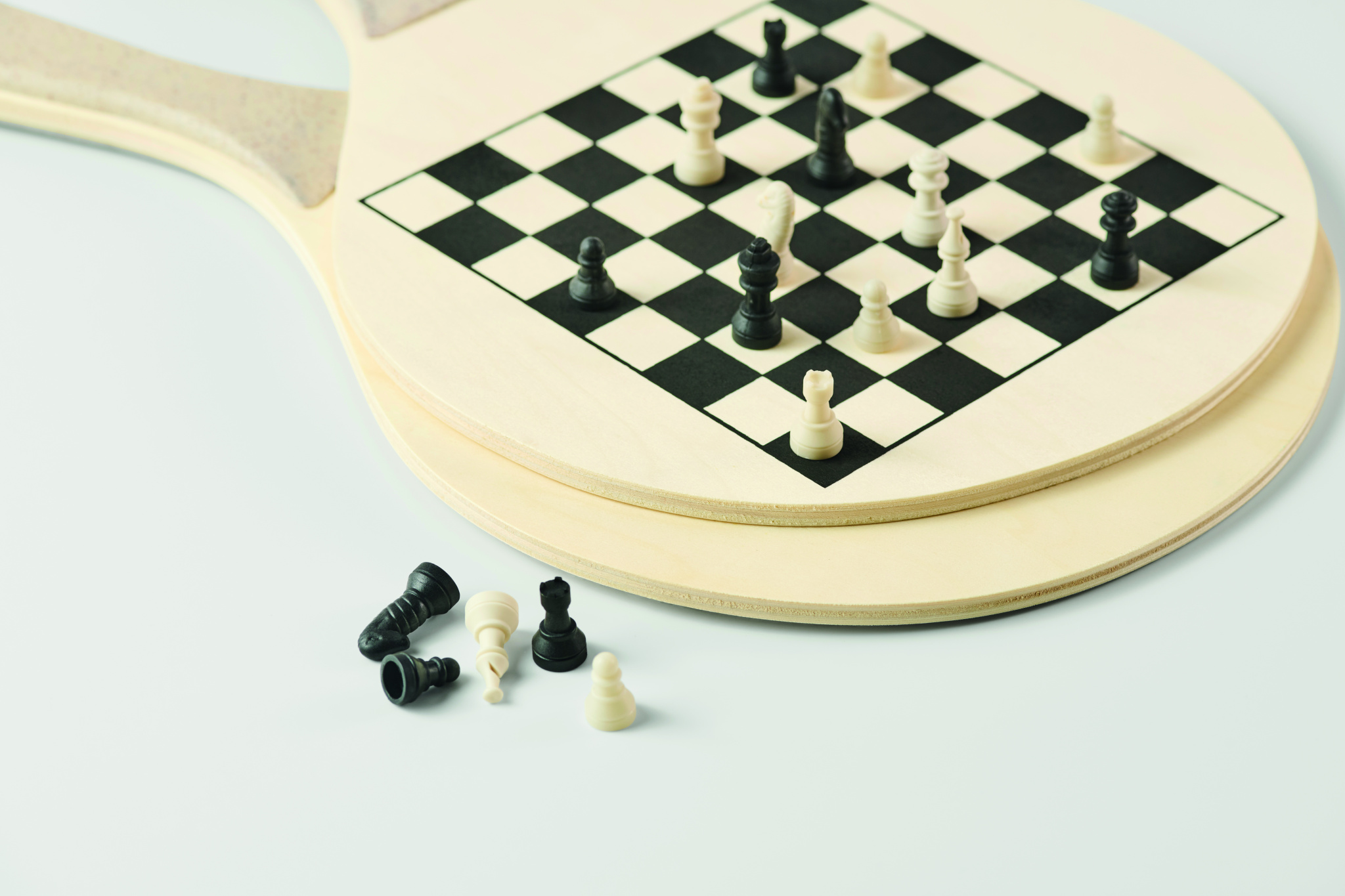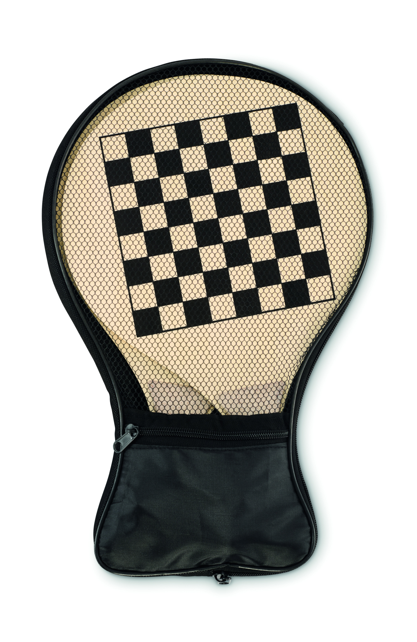 Pludmales komplekts ar 2 saplākšņa raketēm, tostarp šaha un ludo spēles laukumu. Komplektā ietilpst 1 TPR bumbiņa, kauliņi un dambrete. Iepakots RPET sieta maisiņā ar rāvējslēdzēju.
