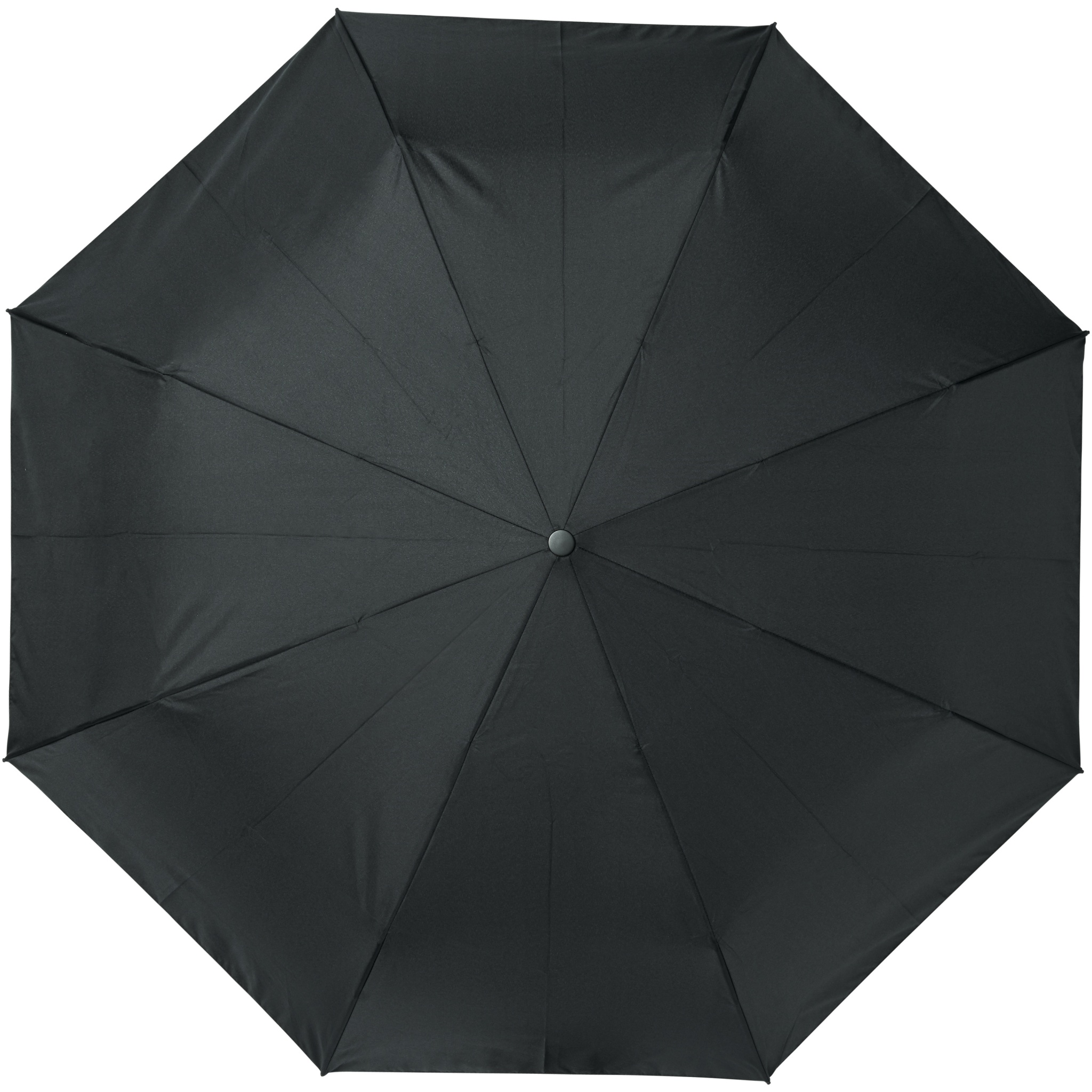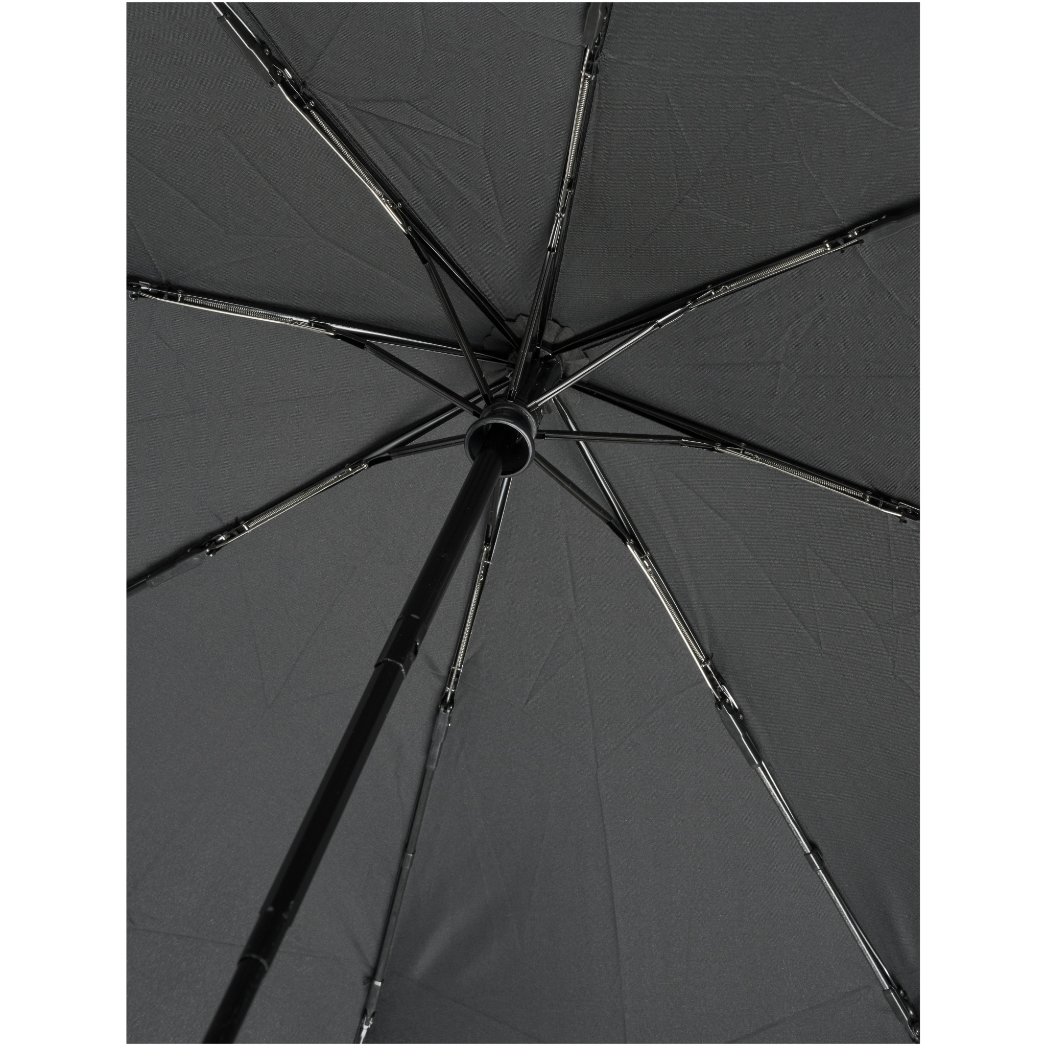 Автоматически открывающийся и закрывающийся зонт с куполом из эпонж полиэстера и переработанного ПЭТ-пластика. Прочный металлический стержень, высококачественная рама со спицами из стекловолокна, обеспечивающая максимальную гибкость в ветреную погоду. Поставляется с чехлом и может легко поместиться в сумку или рюкзак для удобного ношения.