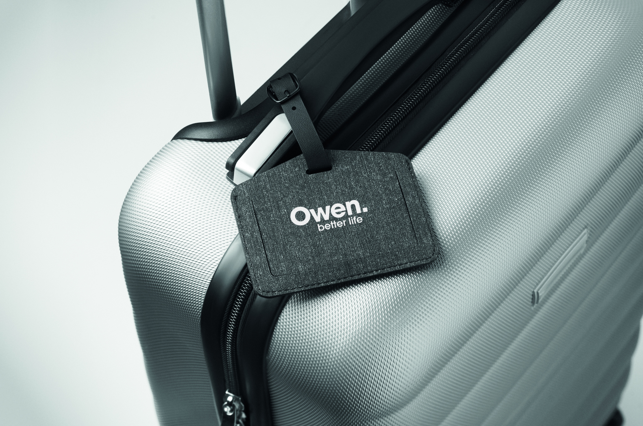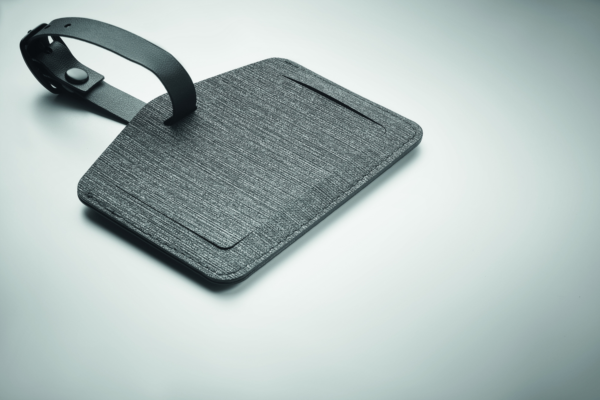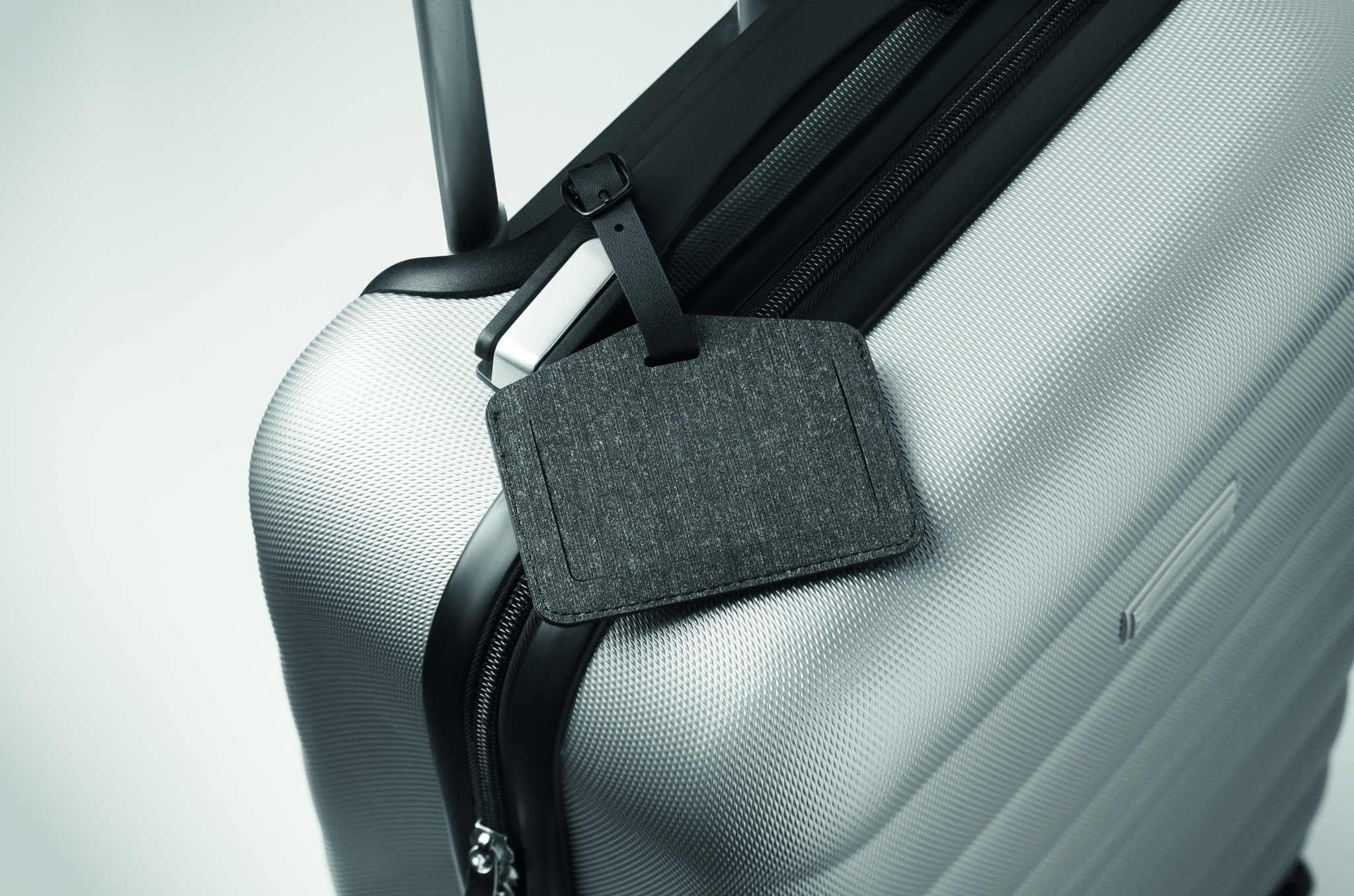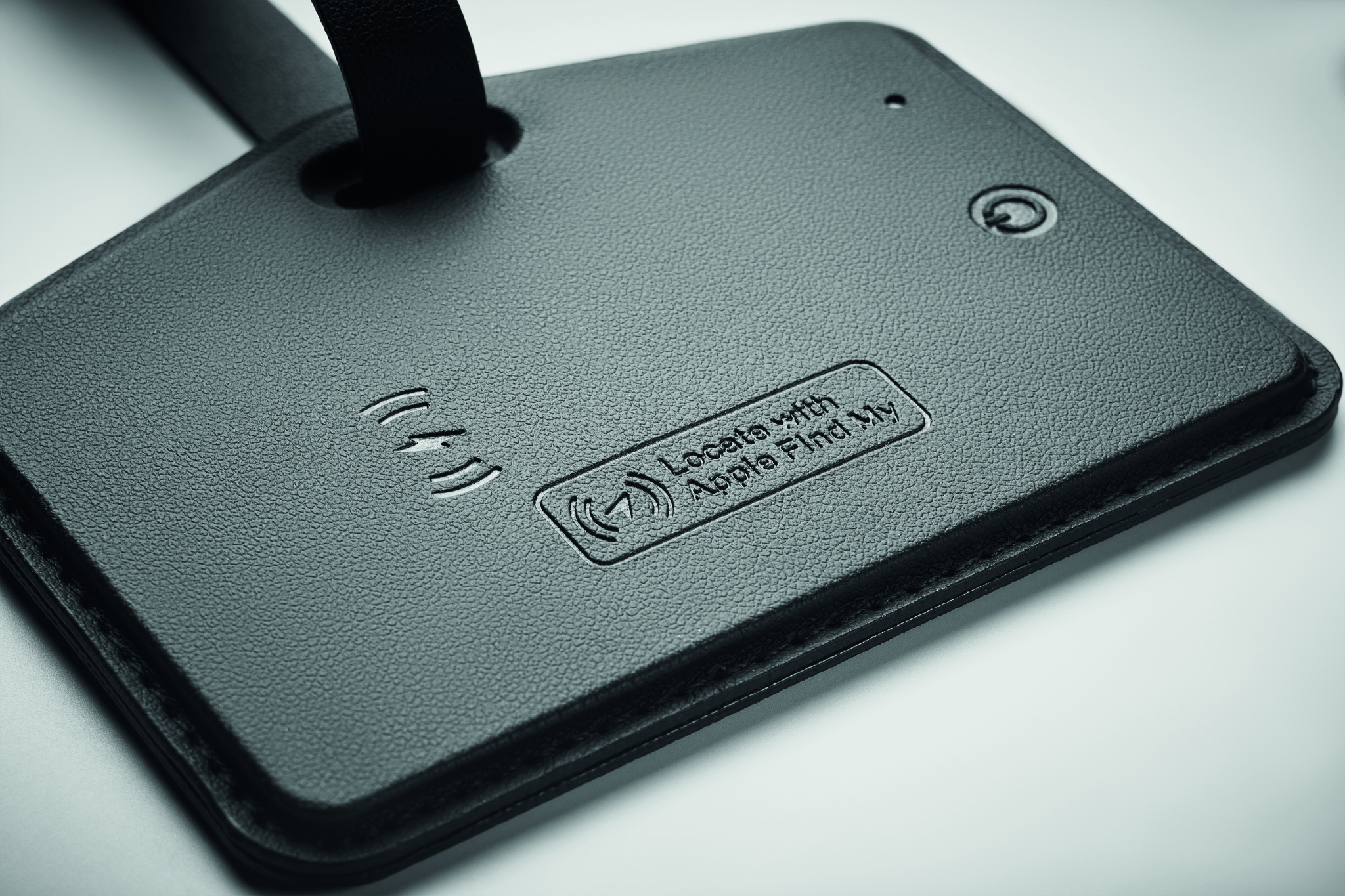 Luggage tag (70% PU and 30% recycled polyester) with rechargeable smart Apple® Find My locator anti-loss finder. Only compatible with Apple® devices (iOS). The Apple® Find My network is a safe and convenient way to find your compatible personal items using your Apple® devices.