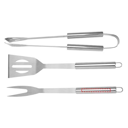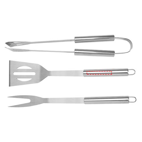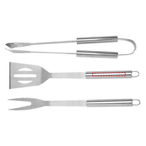 Набор для барбекю из 3 предметов: лопатка (34,8 x 7,5 см), вилка (35,4 x 3,35 см) и щипцы (35 x 6,8 x 4 см). Все аксессуары поставляются в легком футляре для удобства переноски и хранения. Идеальный аксессуар для барбекю в саду или для того, чтобы взять с собой для приготовления еды на гриле на открытом воздухе с друзьями и семьей.