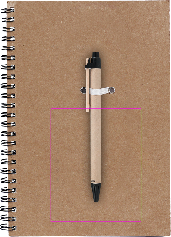 Блокнот формата А5 из переработанного картона и бумаги с 120 линованными страницами и шариковой ручкой с синими чернилами из переработанного картона. Мы напечатаем ваш логотип на обложке.