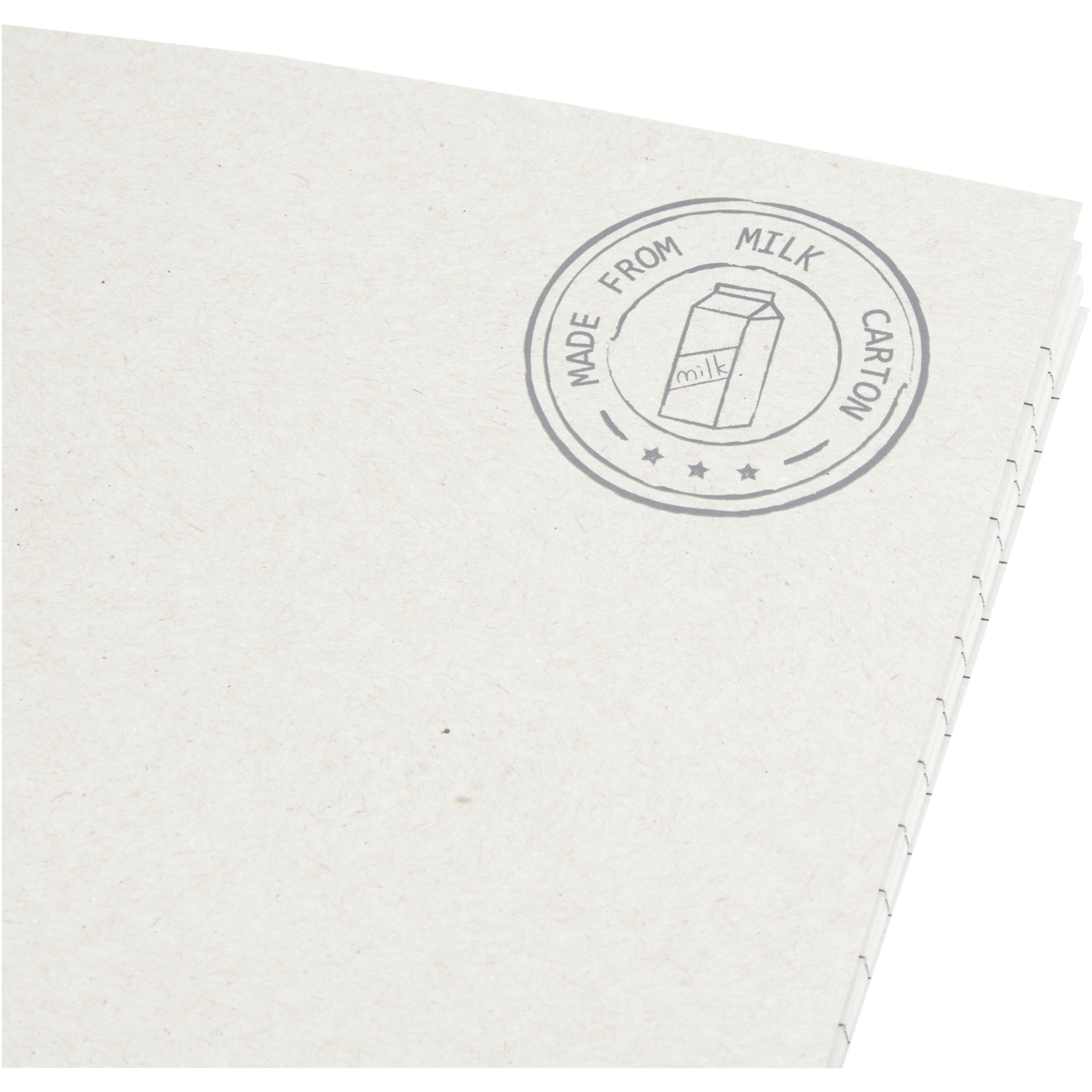Записная книжка формата А5 с 30 линованными листами плотностью 80 г/м² из переработанных коробок из-под молока (до 70%). Картонные коробки из-под молока собираются, сортируются, перерабатываются и превращаются в бумагу, таким образом действительно превращая мусор во что-то полезное.