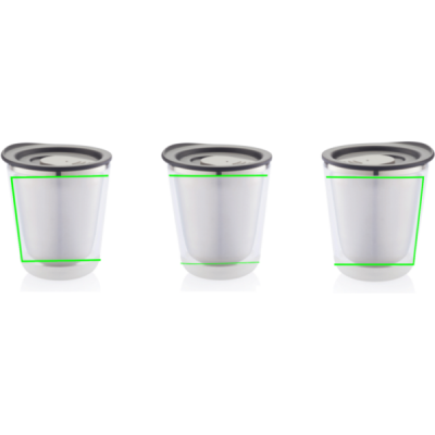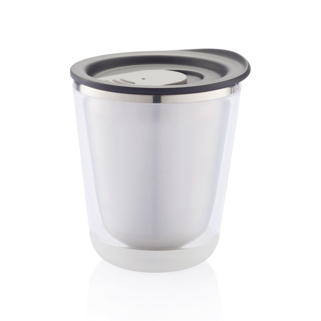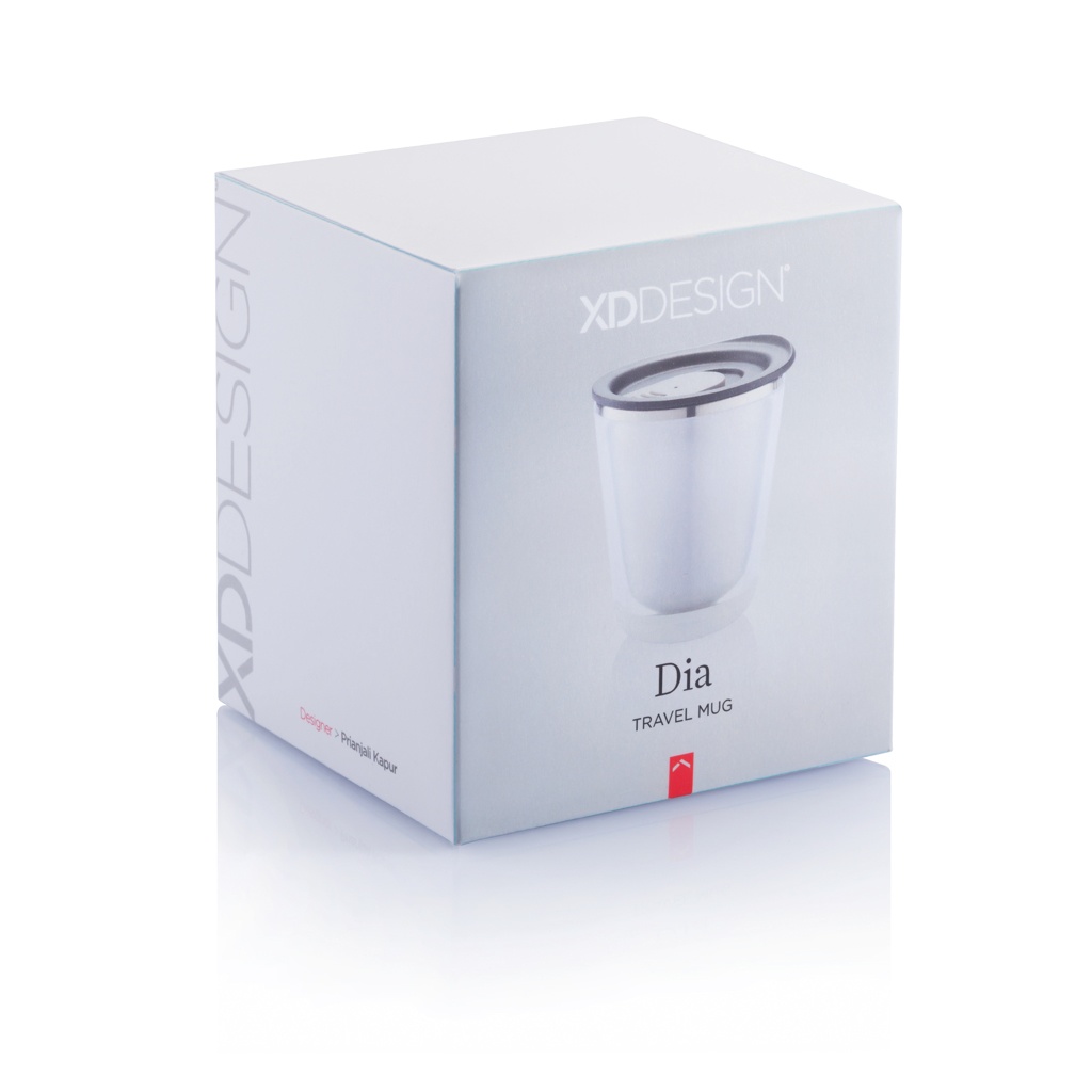 Закрывающаяся, изолированная и достаточно компактная, чтобы поместиться под кофемашиной (227 мл). Она также очень гигиенична, поскольку внутренняя часть кружки сделана из нержавеющей стали, а не из пластика. Разработана таким образом, чтобы кружку было легко разобрать для переработки. Зарегистрированный дизайн®