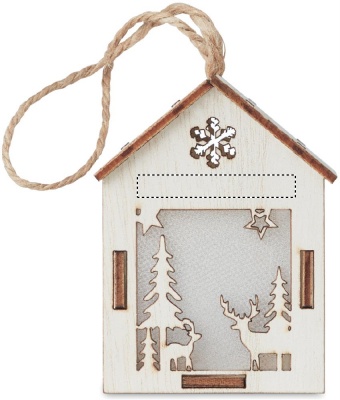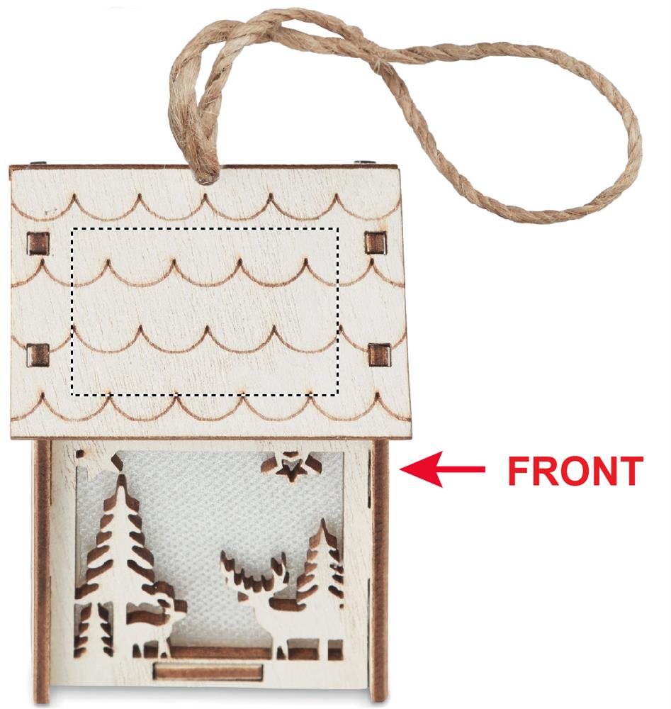 Декоративный домик из МДФ с внутренней подсветкой с рождественским орнаментом и подвеской. 3 батарейки AG10 в комплекте.