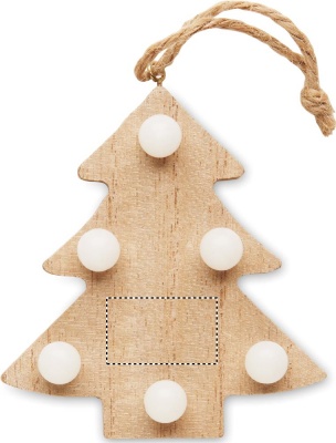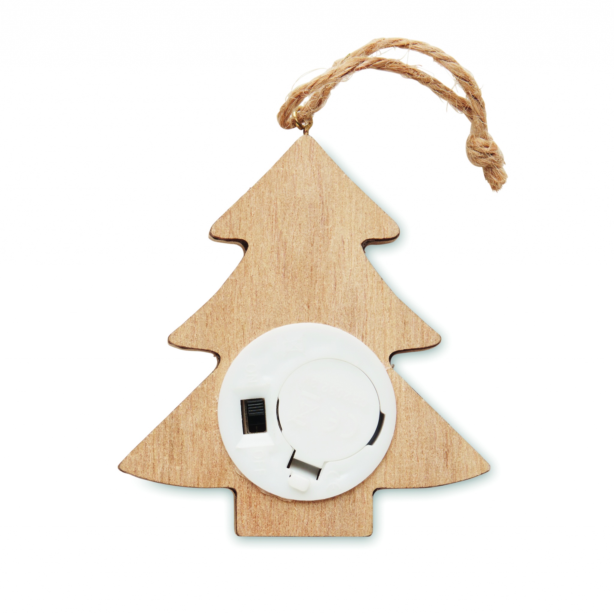 Елка деревянная (80% древесины тополя и 20% деревянной стружки) украшенная 6 светодиодными лампочками. В комплект входит 1 батарейка CR2032.