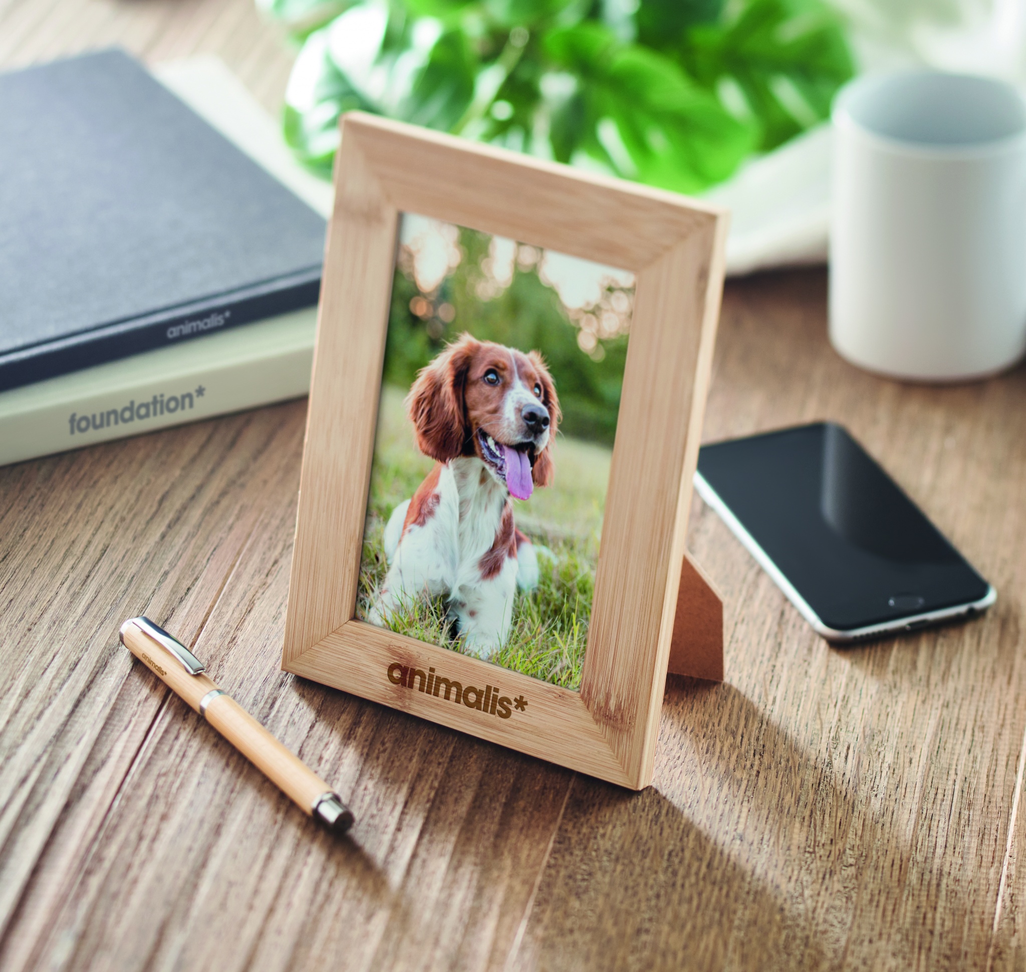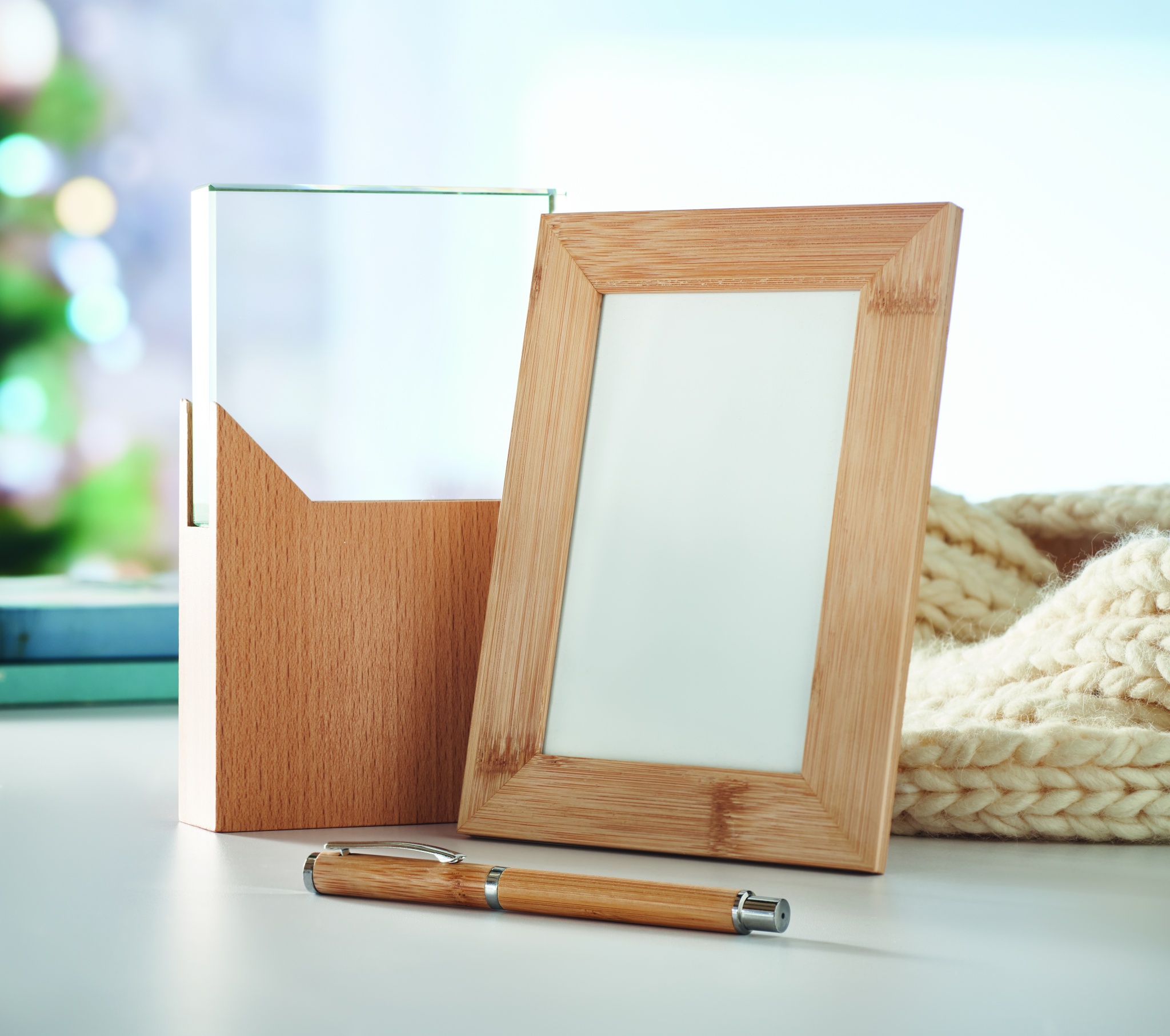 Бамбуковая фоторамка. Рамка может находиться в подвешенном, вертикальном или горизонтальном положении. Размер фотографии: 15 x 10 см.