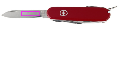 Характеристики: 1. Большое лезвие 2. Маленькое лезвие 3. Штопор 4. Консервный нож 5. Маленькая отвертка (3 мм) 6. Подъемник для крышек 7. Отвертка (6 мм) 8. Инструмент для зачистки проводов 9. Развертка 10. Кольцо для ключей 11. Пинцет 12. Зубочистка