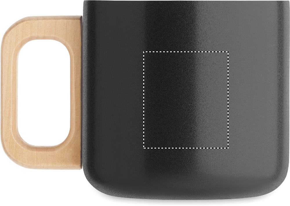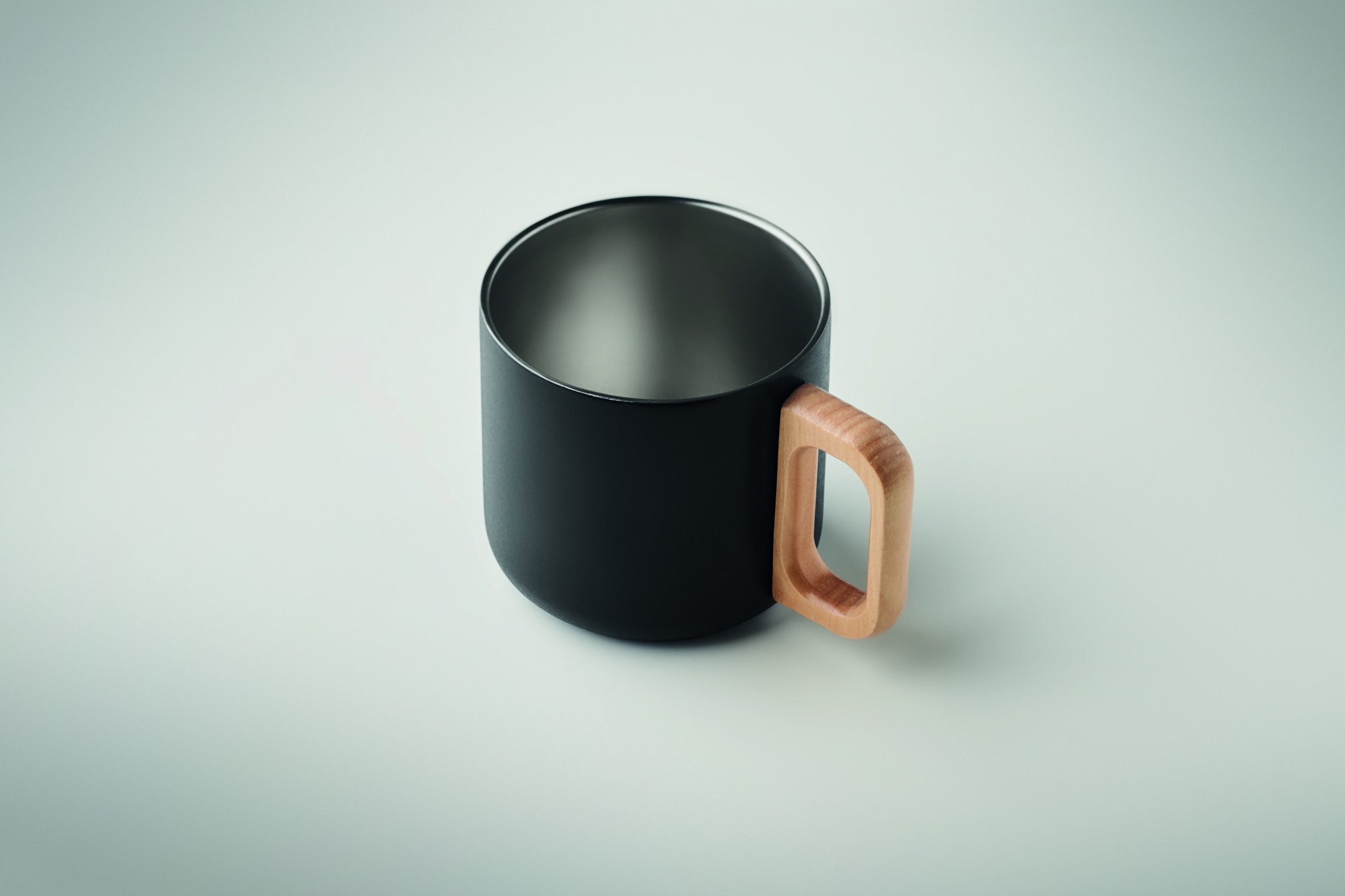 Кружка с двойными стенками из переработанной нержавеющей стали (90%) и обычной нержавеющей стали (10%) с деревянной ручкой. Объем: 350 мл.