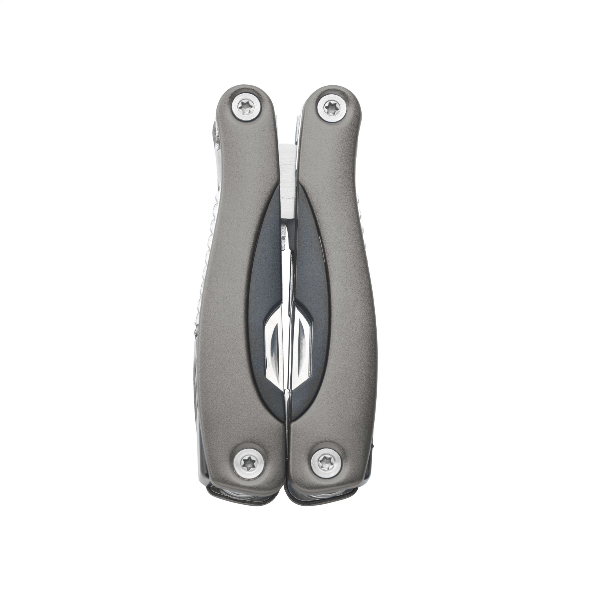 Компактный многофункциональный инструмент из нержавеющей стали с алюминиевой рукояткой и металлическим внешним видом. 9 предметов с 13 функциями: щипцы, кусачки, 3 отвертки, крестовая отвертка, напильник, пила/скребок для рыбы, нож, развертка, консервный нож и съемник крышек. В нейлоновом чехле 600D. Обратите внимание, что могут применяться местные правила относительно хранения и/или ношения ножей или многофункциональных инструментов в общественных местах. Каждый предмет поставляется в индивидуальной коричневой картонной коробке.