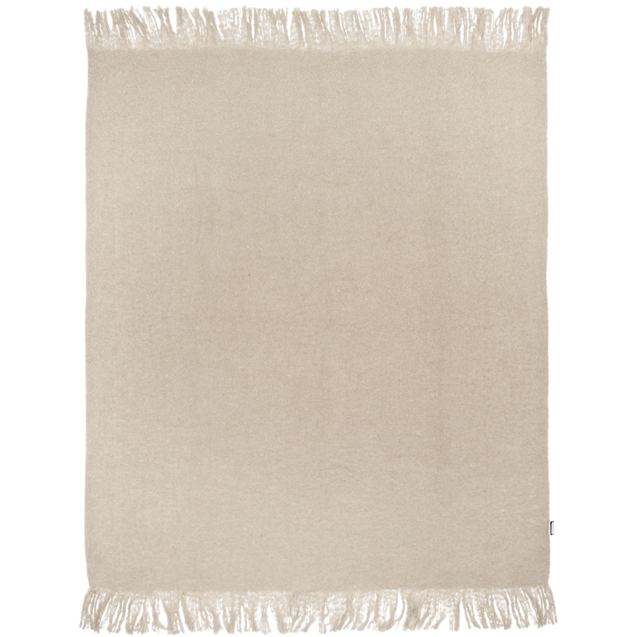 Ультрамягкое мохеровое одеяло из вторичного ПЭТ, обернутое лентой из вторичного ПЭТ 190T. Упаковано в полиэтиленовый пакет из переработанного материала. Длина бахромы: 10 см с каждой стороны. Размер ленты: 72 см x 4 см.