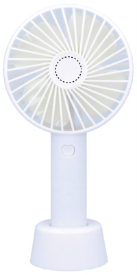 Маленький портативный вентилятор с дополнительной подставкой для использования в качестве настольного вентилятора. 3 уровня скорости. USB-порт аккумуляторная батарея 2000 мАч.