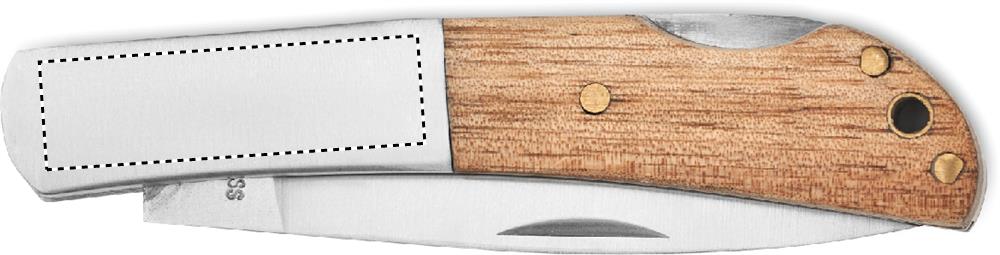 Складной нож из нержавеющей стали с деревянной ручкой из акации. Длина лезвия: 6 см.