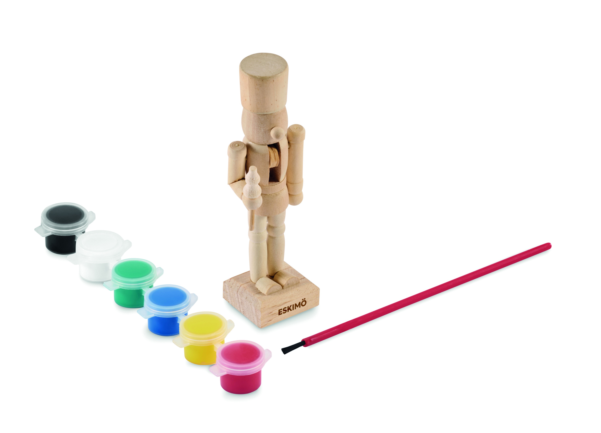 Painting set with nutcracker character in wood with 6 water based pigments and 1 brush.