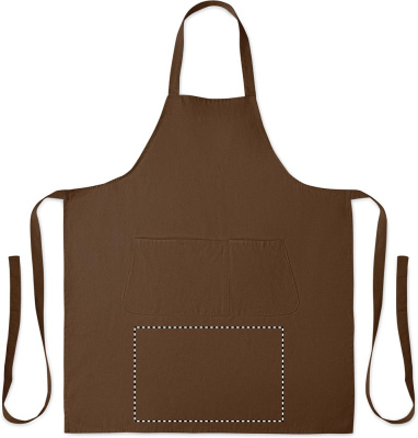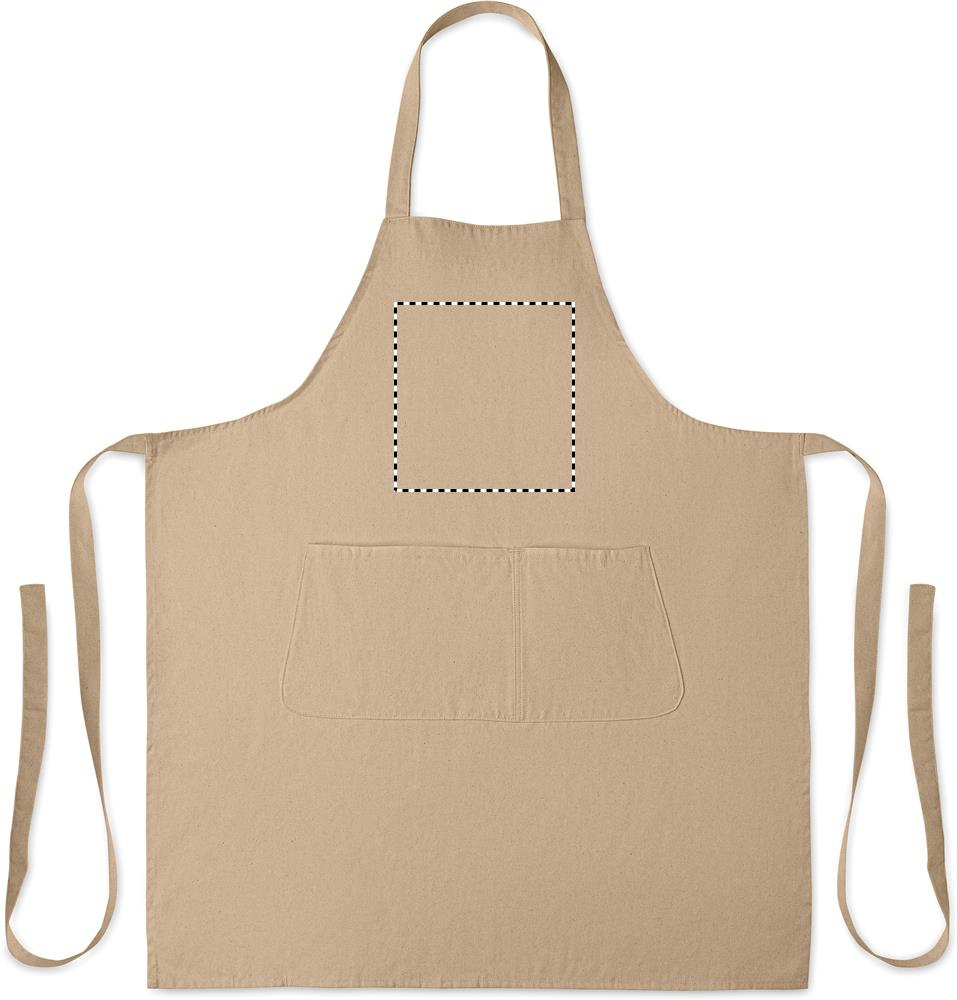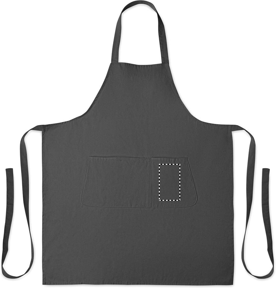 Adjustable bib apron with 1 large front pocket with 2 compartments in 240 gr/m² organic cotton. With adjustable button on the neck strap.