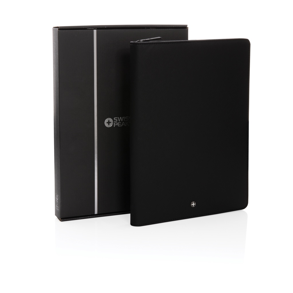 Коллекция Swiss Peak Heritage говорит на языке современной элегантности. Представлена в культовом итальянском переработанном полиуретановом чехле с застежкой-молнией. Внутри есть подставка для планшета/телефона, держатели для гаджетов, отделения для визитных карточек, карманы для заметок и бумаг, а также петля для ручки. С линованным блокнотом из каменной бумаги формата А4 на 20 листов. Портфель изготовлен из переработанных материалов, сертифицированных RCS (Recycled Claim Standard). Сертификация RCS гарантирует полностью сертифицированную цепочку поставок переработанных материалов. Изготовлено из 100% переработанного сертифицированного RCS переработанного полиуретана. Общее содержание переработанных материалов: 9% от общего веса изделия. Не содержит ПВХ.