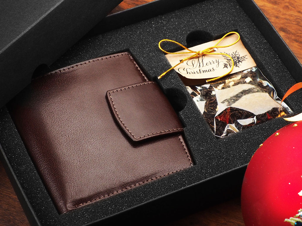 В комплект входит кожаный бумажник