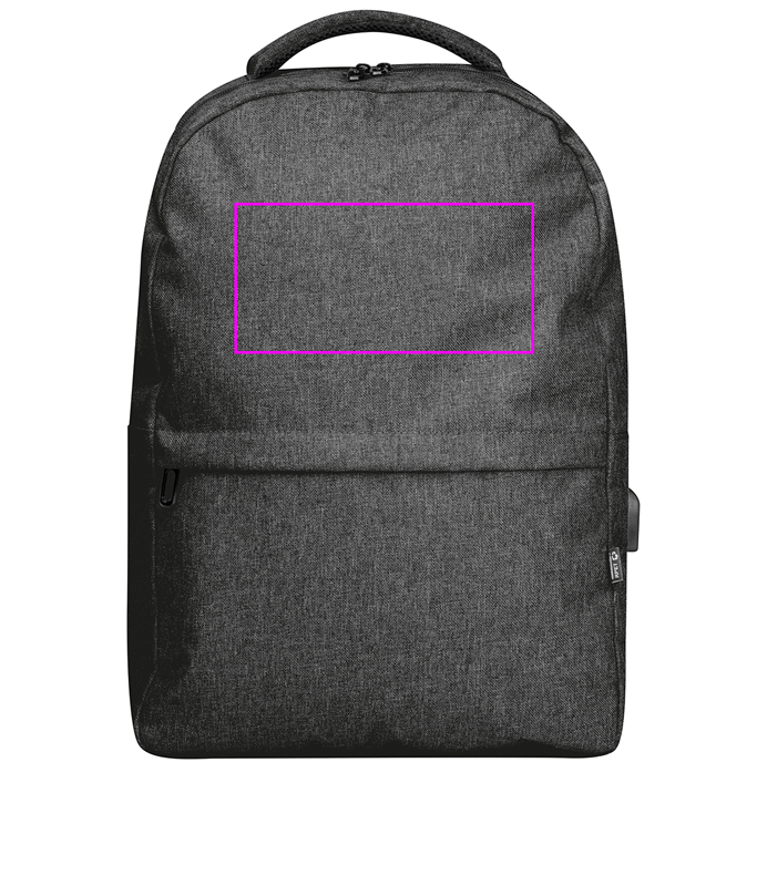 Рюкзак из rPET с USB-портом, мягкими ремнями, отделением для ноутбука, передним отделением и отделением против кражи. Мы напечатаем ваш логотип на переднем отделении.