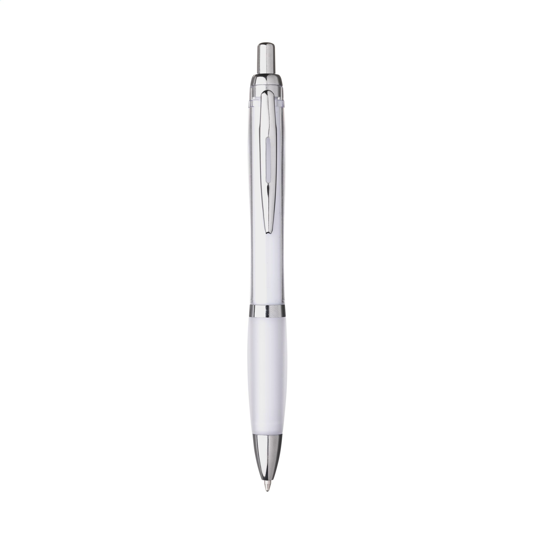 WoW! Шариковая ручка с синими чернилами. Твердый держатель изготовлен из переработанного АБС. С кнопкой, металлическим зажимом и серебристыми акцентами. Сертифицировано GRS. Общее количество переработанного материала: 53%.