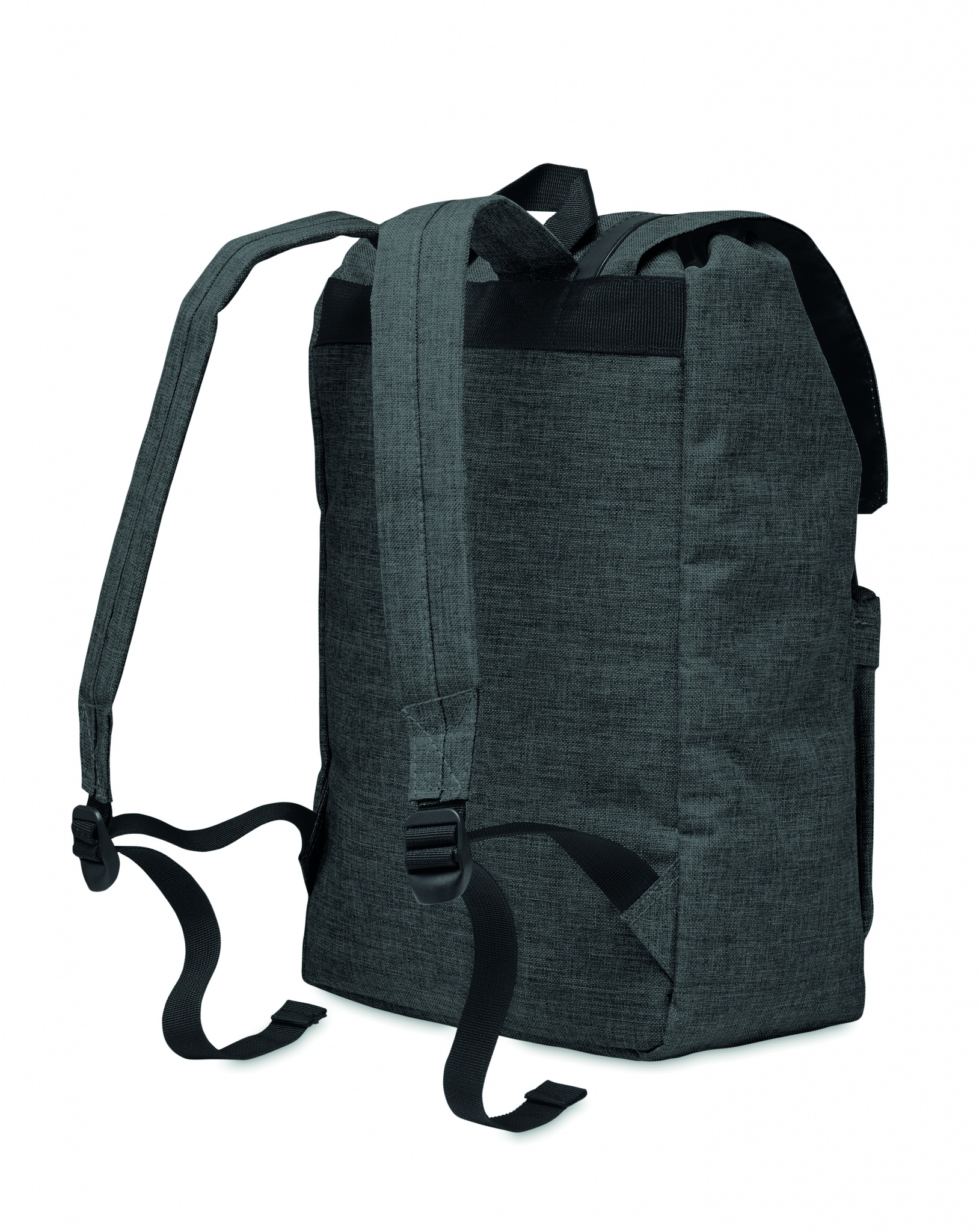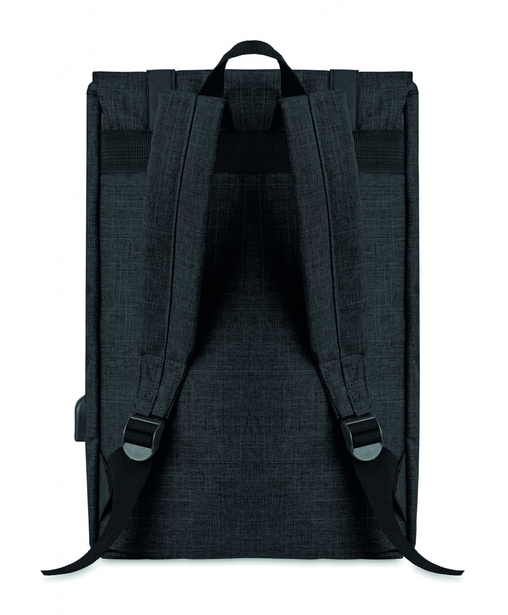 Рюкзак из полиэстера 600D с мягкими шлейками. Внутри 1 отделение для 15-дюймового ноутбука и USB-кабель для зарядки. Декоративные ремни закрываются на магните. Фронтальный карман на молнии.