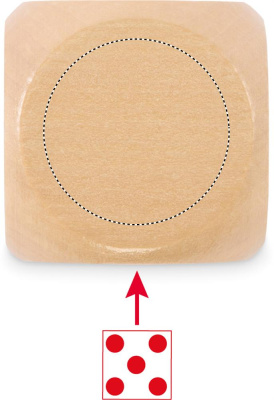 Dice in schima wood. 5cm diameter. This item can only be delivered in multiples of inner packaging being 25 pcs. 1 side reserved for printing. FSC®-certified | FSC 100%, W15.2, FSC-C213206