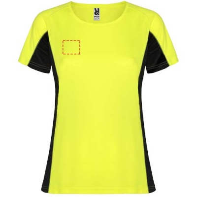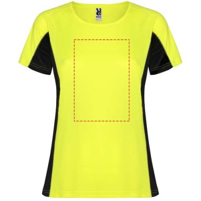Shanghai женская спортивная футболка с коротким рукавом, Флуоресцентный желтый / Насыщенный черный