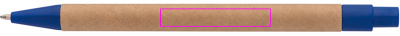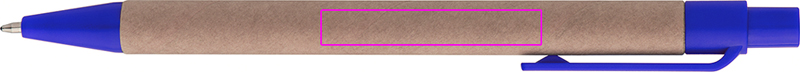 Шариковая ручка из переработанной бумаги и цветных пластиковых аппликаций, синие буквы. Ваш логотип напечатан справа от зажима.