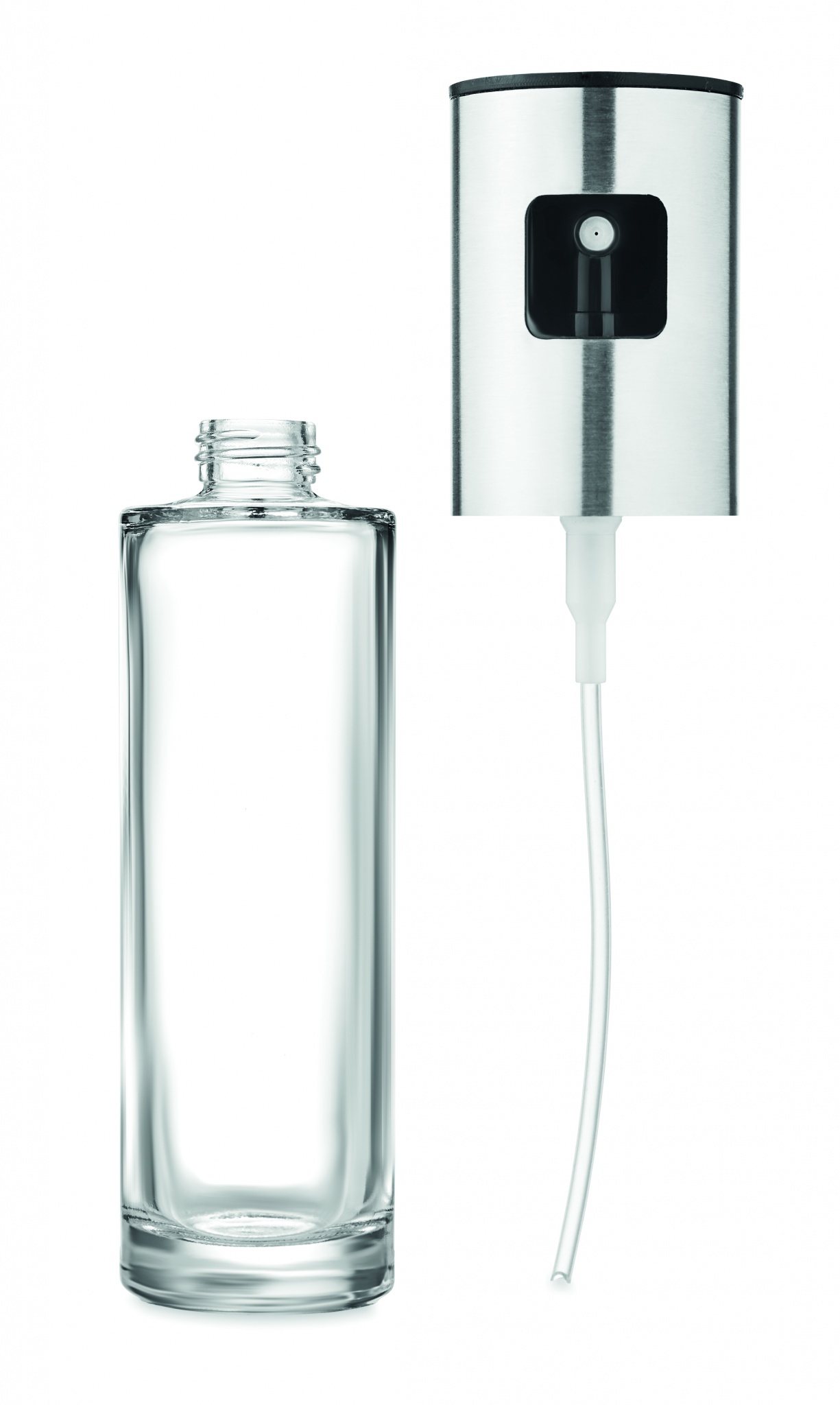 Стеклянный спрей-дозатор для масла с крышкой из нержавеющей стали. Емкость: 100 мл.