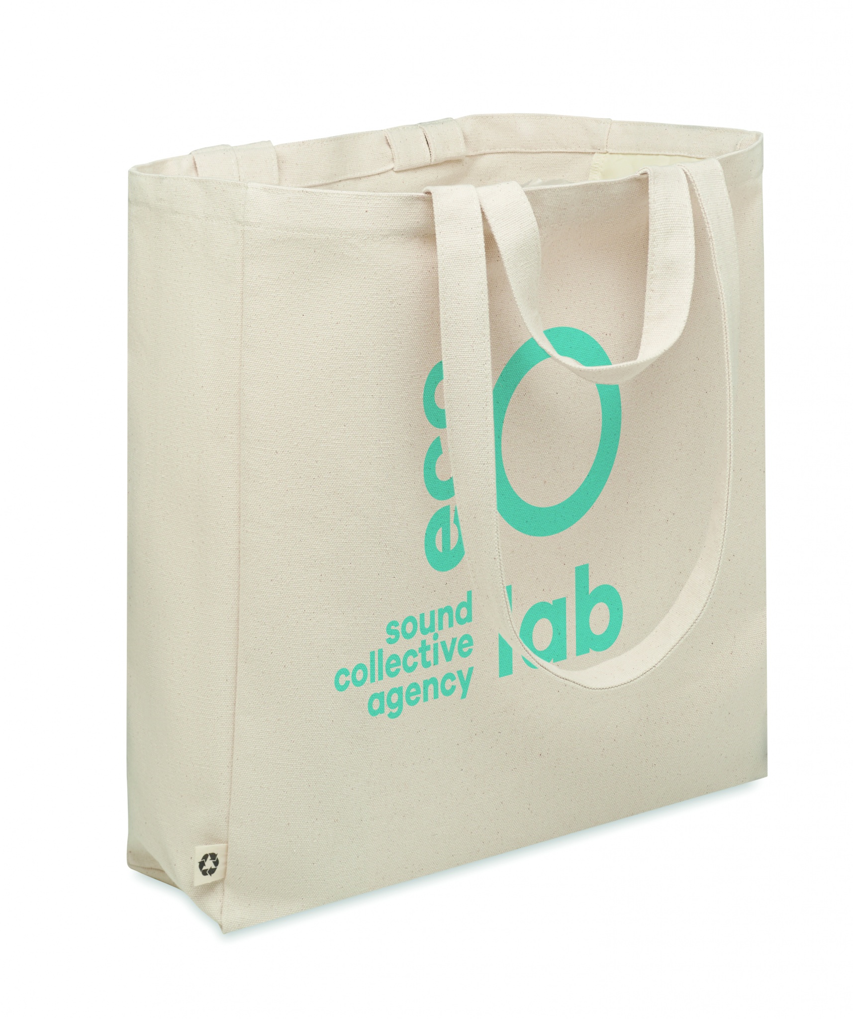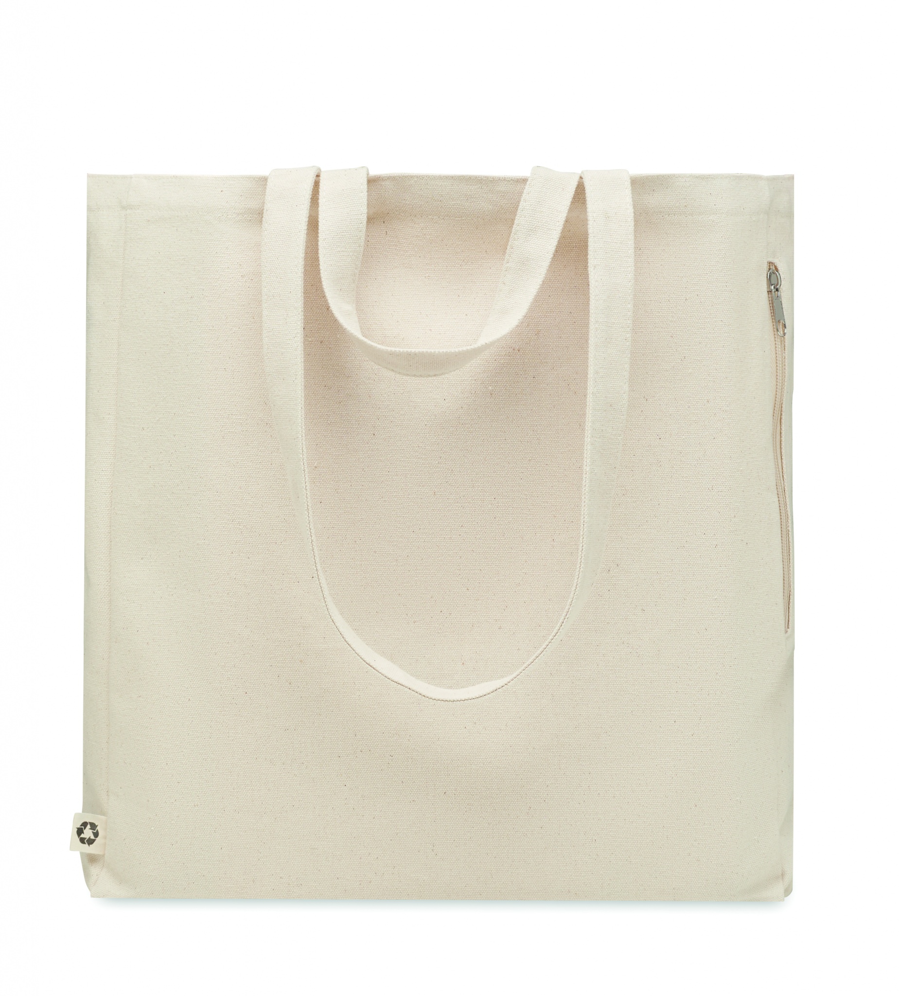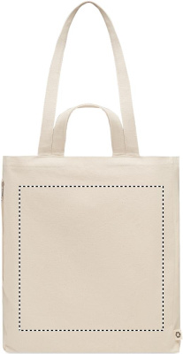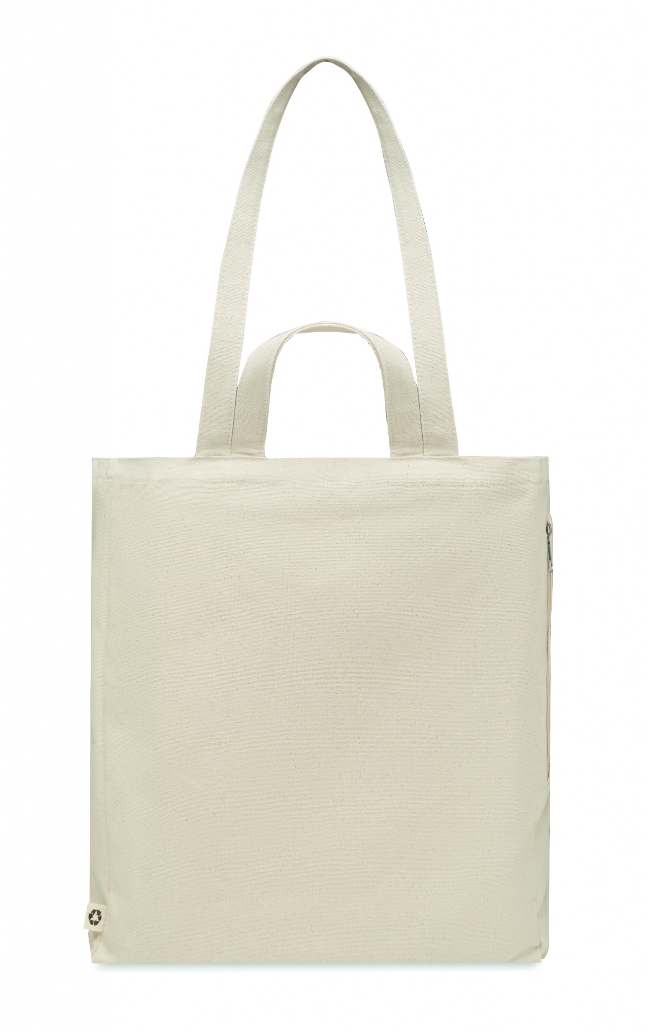 Сумка для покупок или пляжа из переработанного поликоттона (70% переработанного хлопка, 30% переработанного полиэстера) с короткими ручками. Имеет боковой карман на молнии гр/м² 380.