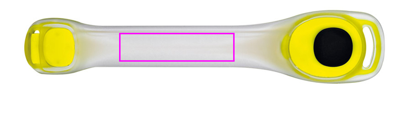 Светодиодный браслет безопасности с двумя красными светодиодами с двумя режимами свечения: постоянный свет и мигание, а также светоотражающей полосой на застежке. Мы печатаем ваш логотип на прозрачной пластиковой части посередине. Две пуговичные батарейки уже включены.